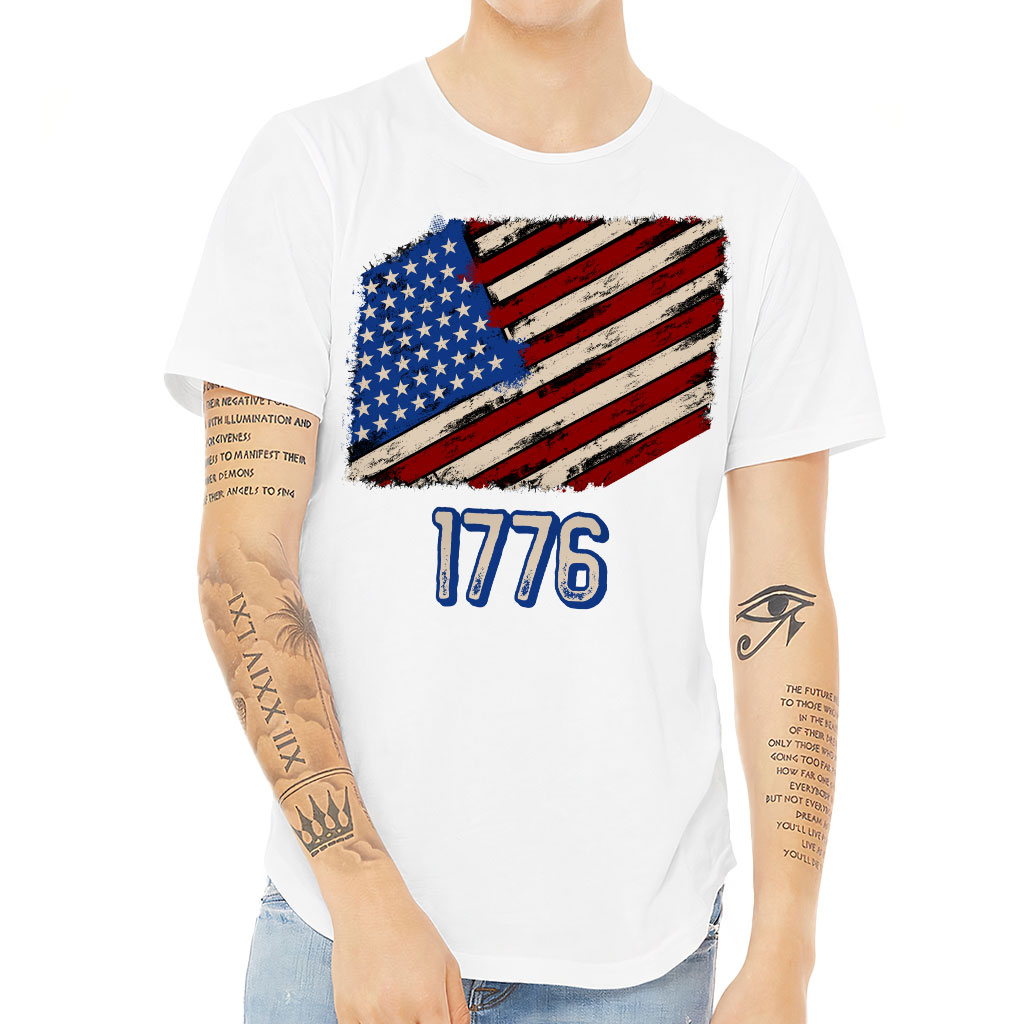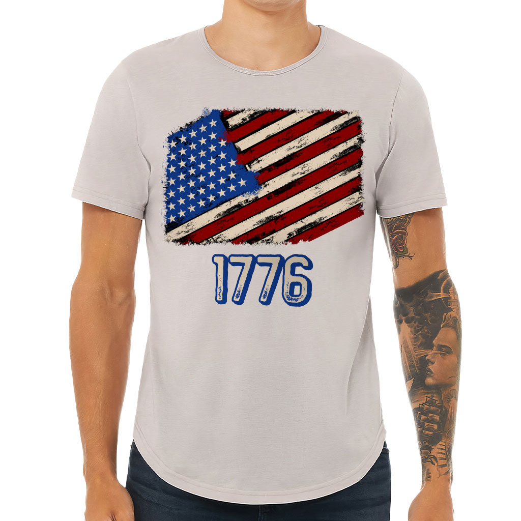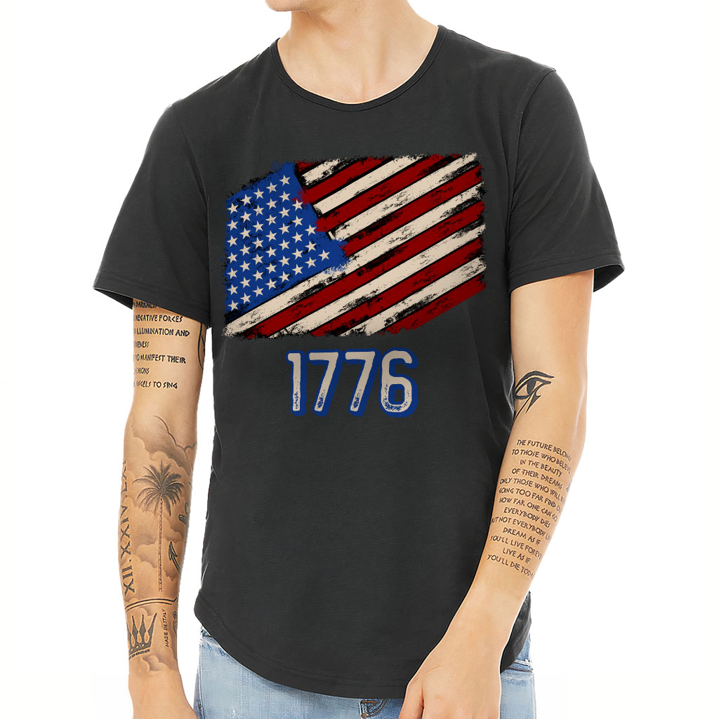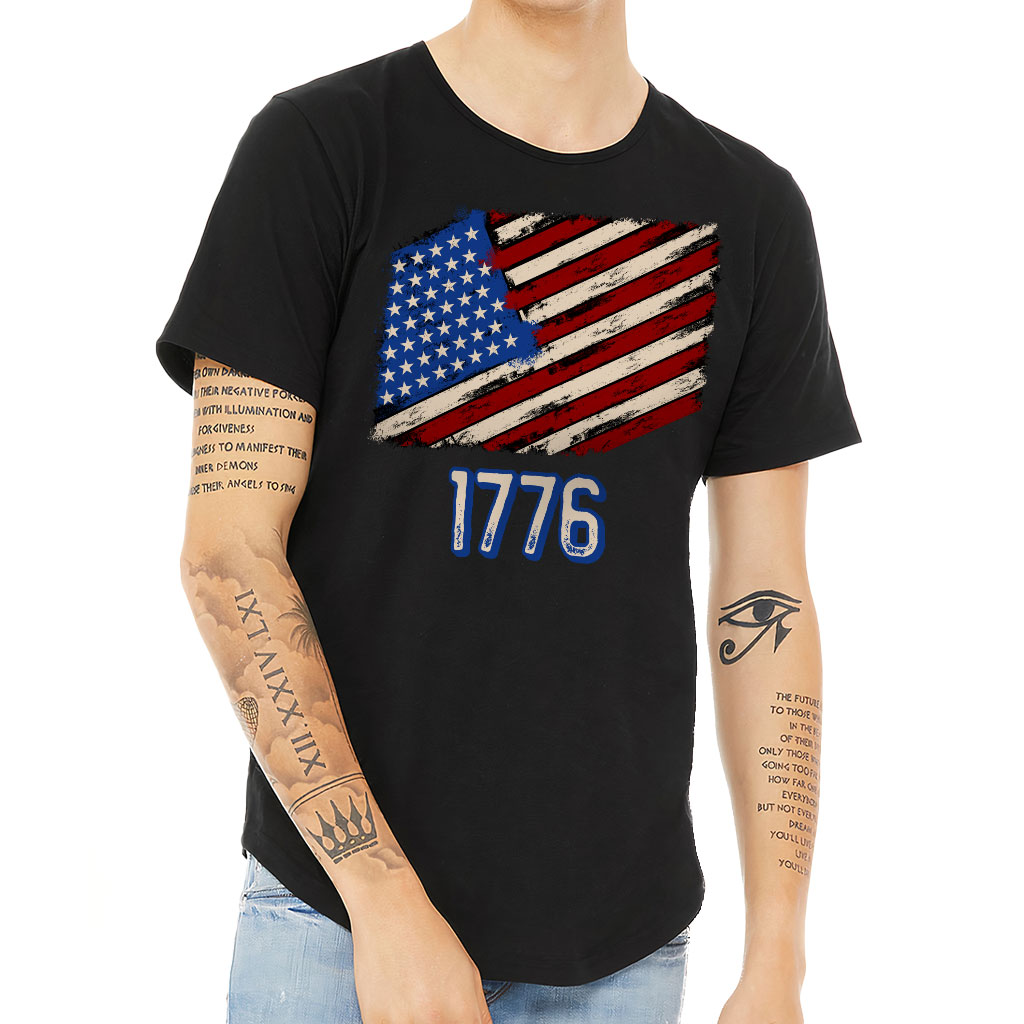 1776 American Flag Curved Hem T-Shirt – Flag T-Shirt – Cool Curved Hem Tee