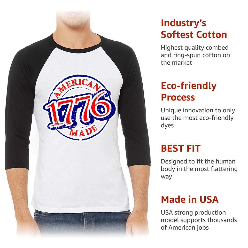 features raglan 3/4 sleeves and a modern fit that is perfect for a day