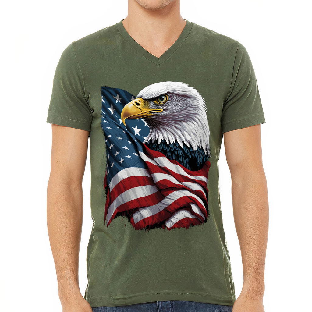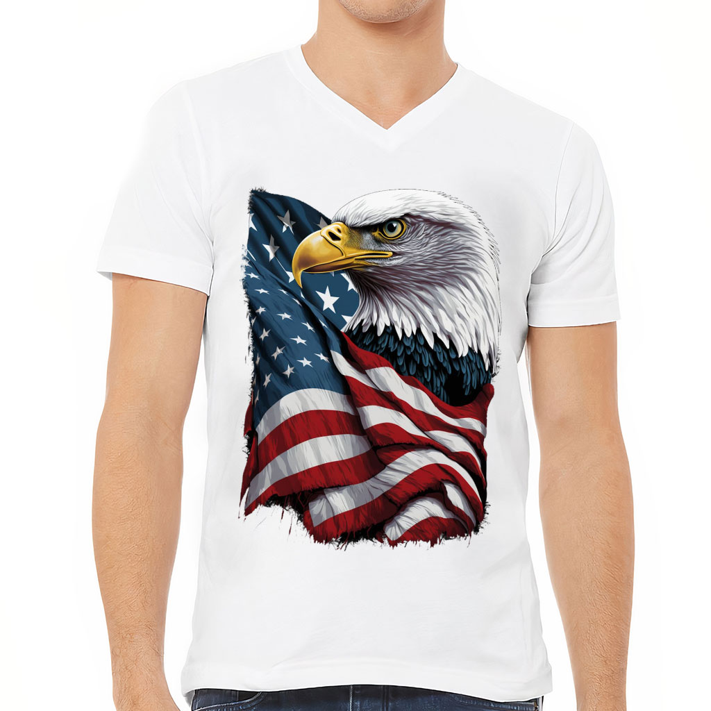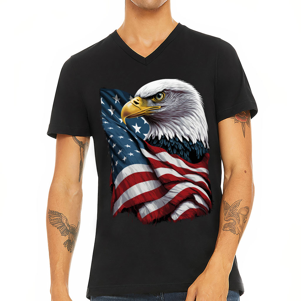 Bald Eagle V-Neck T-Shirt – Bird T-Shirt – USA Flag V-Neck Tee