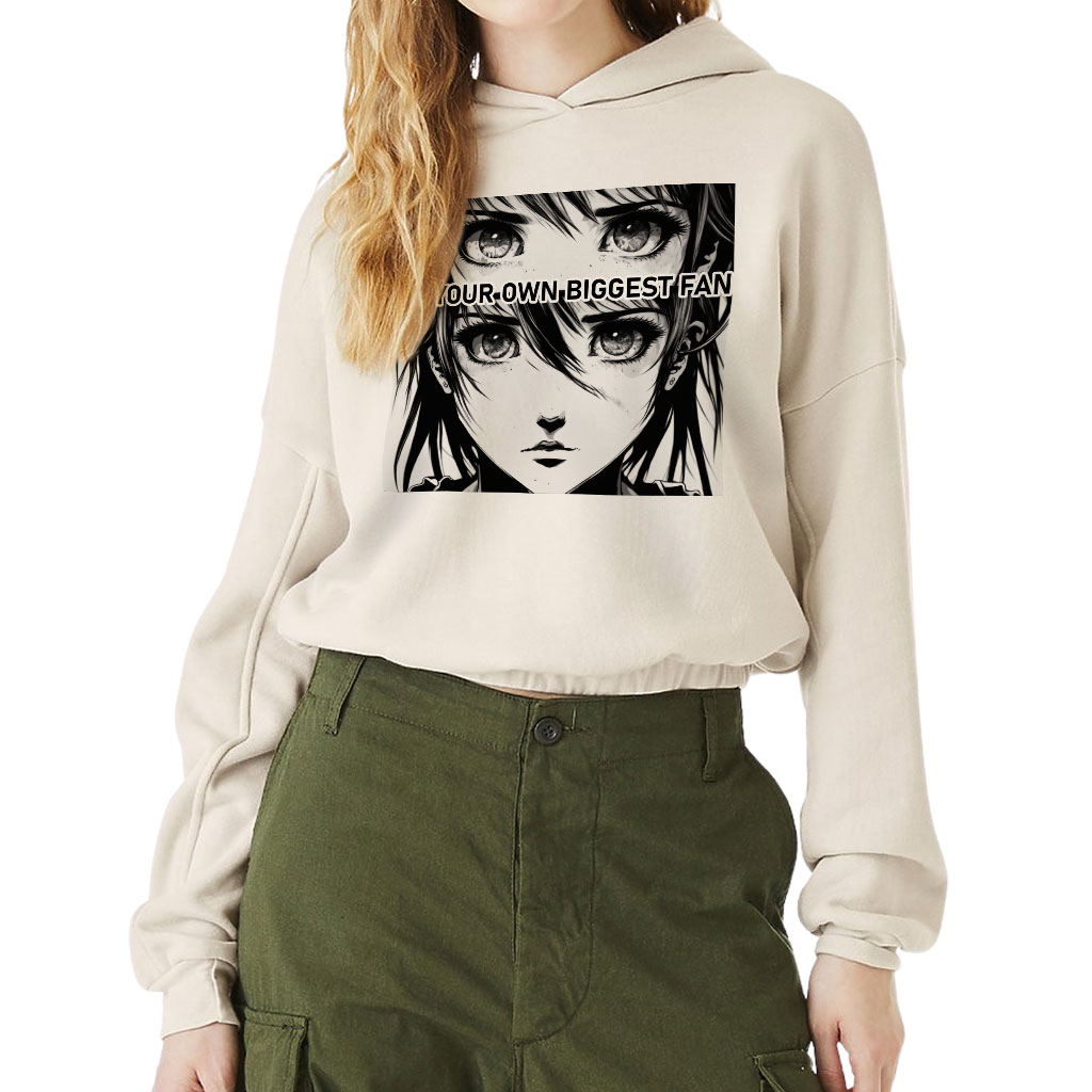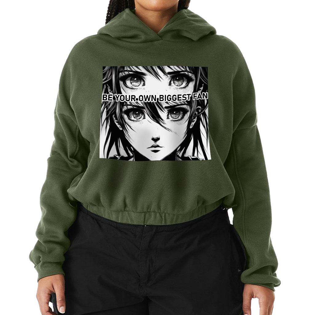 Be Your Own Biggest Fan Cinched Bottom Hoodie – Print Women’s Hoodie – Phrase Hooded Sweatshirt