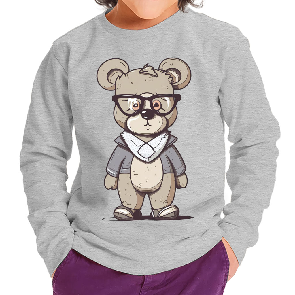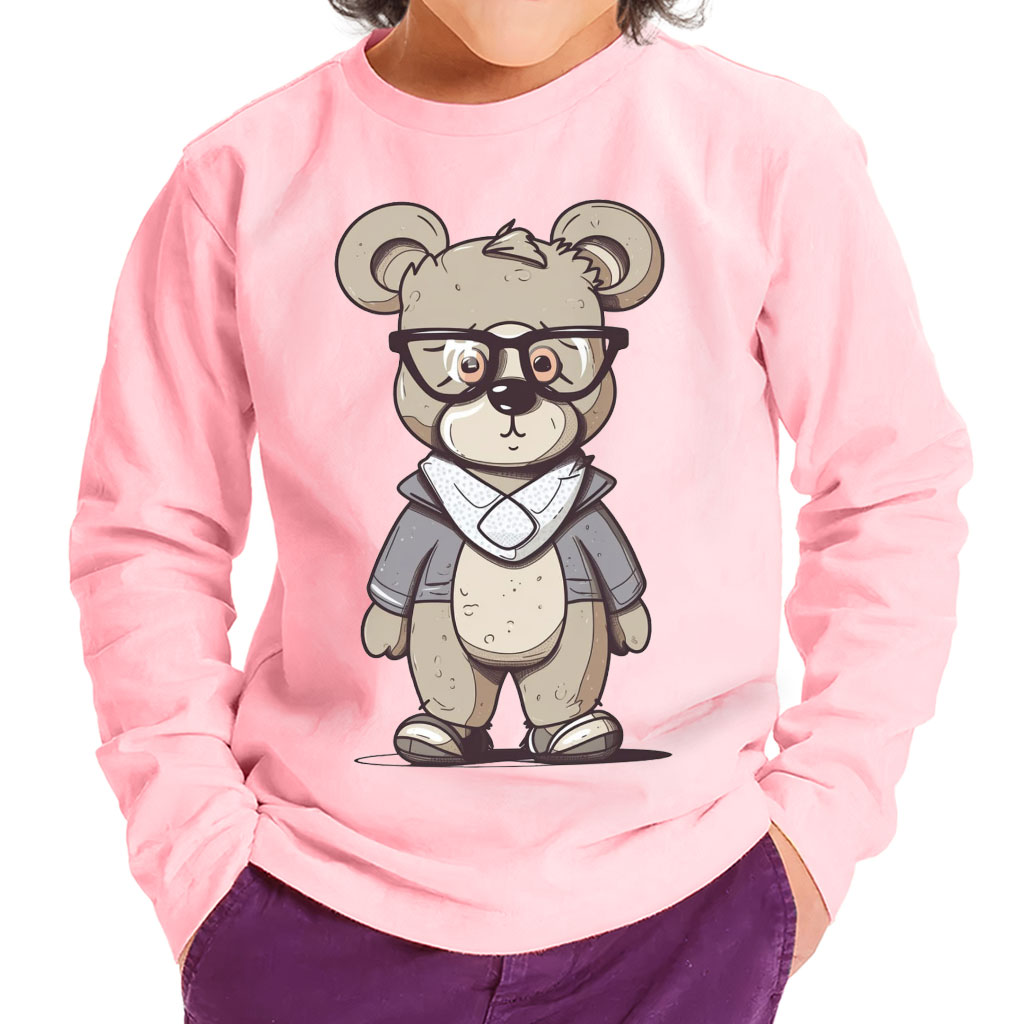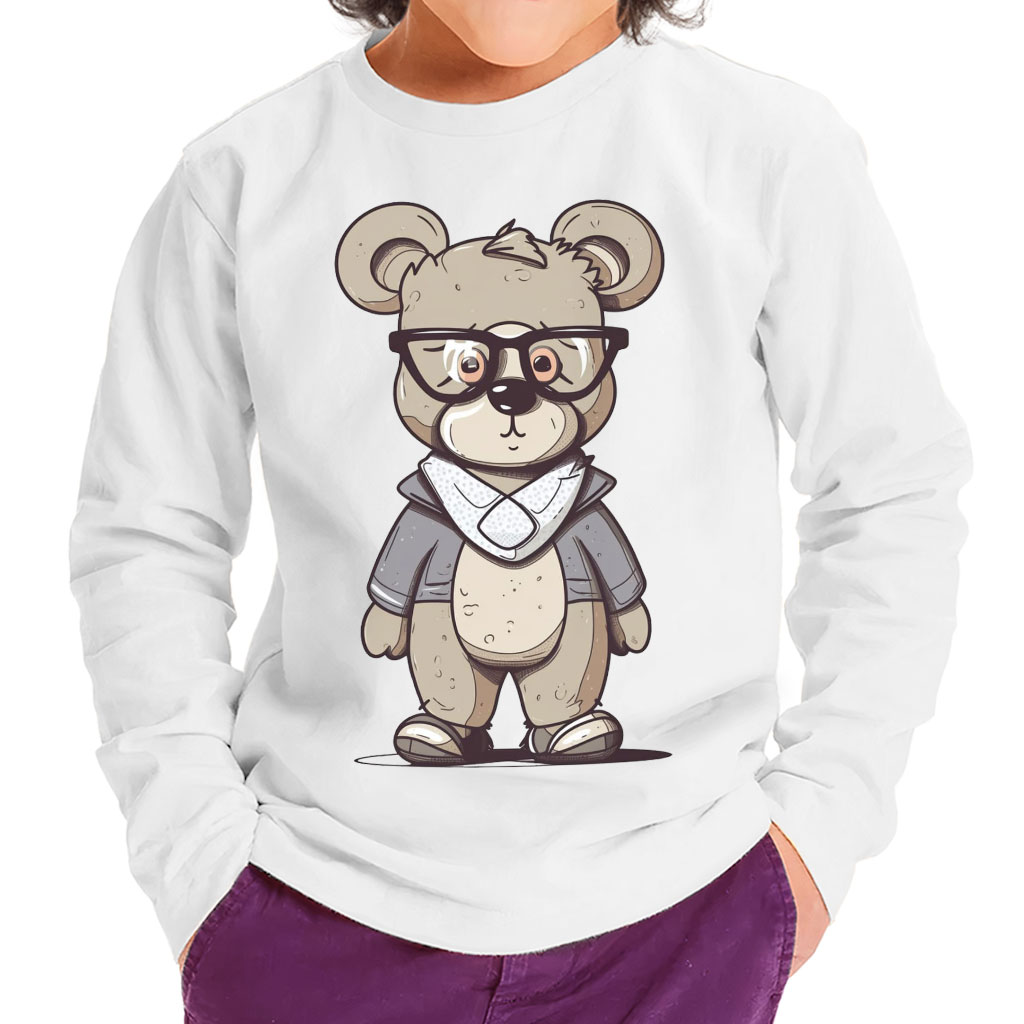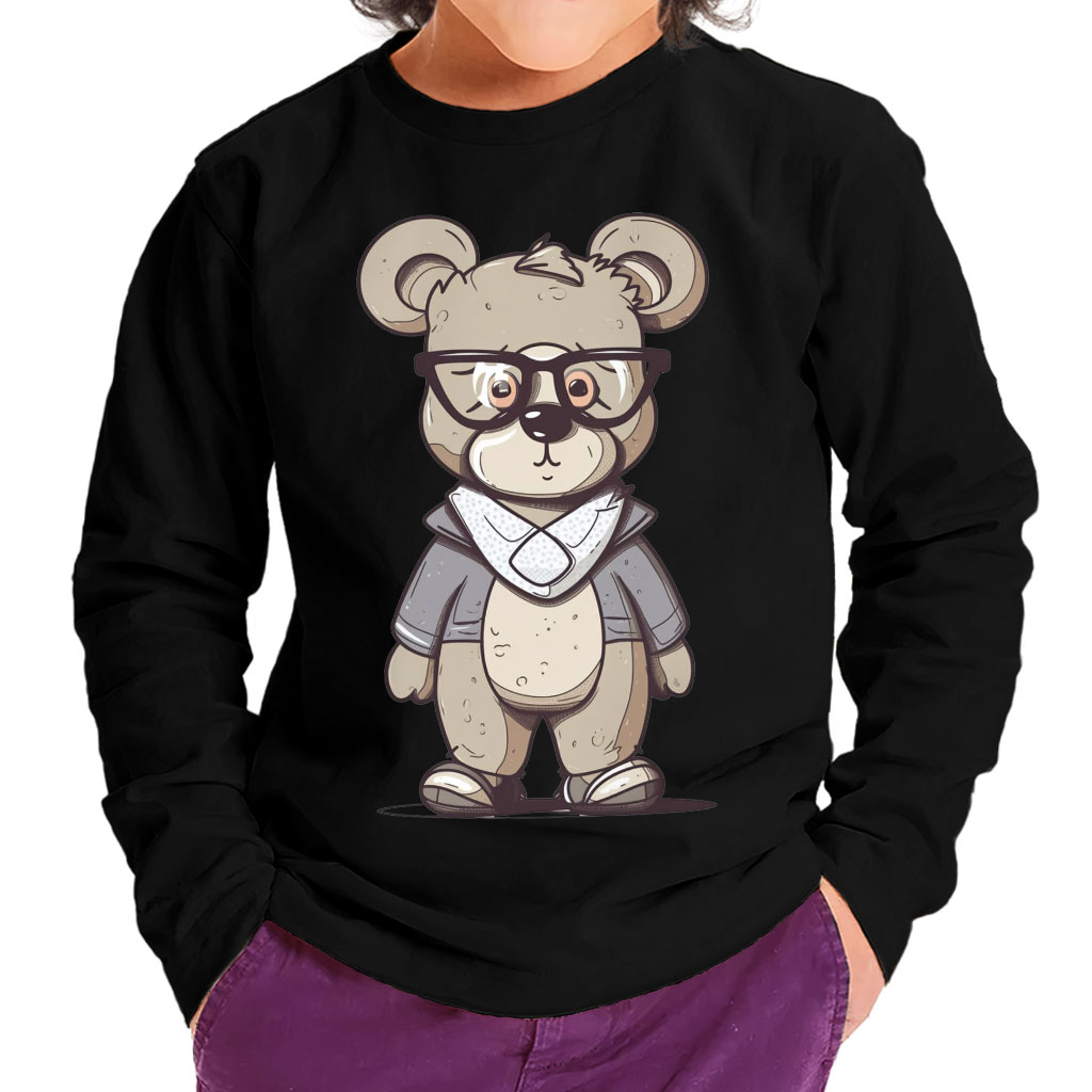 Bear With Glasses Toddler Long Sleeve T-Shirt – Cartoon Kids’ T-Shirt – Art Long Sleeve Tee