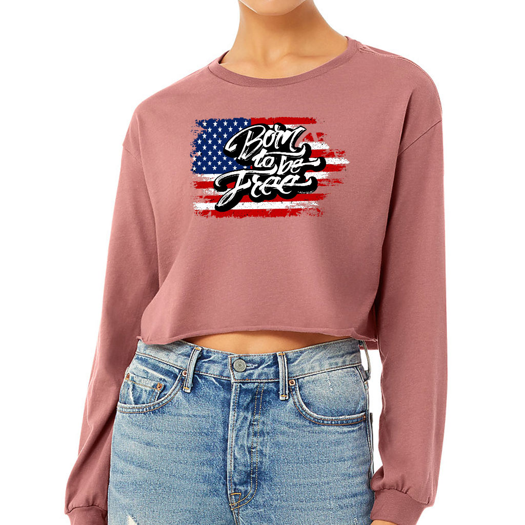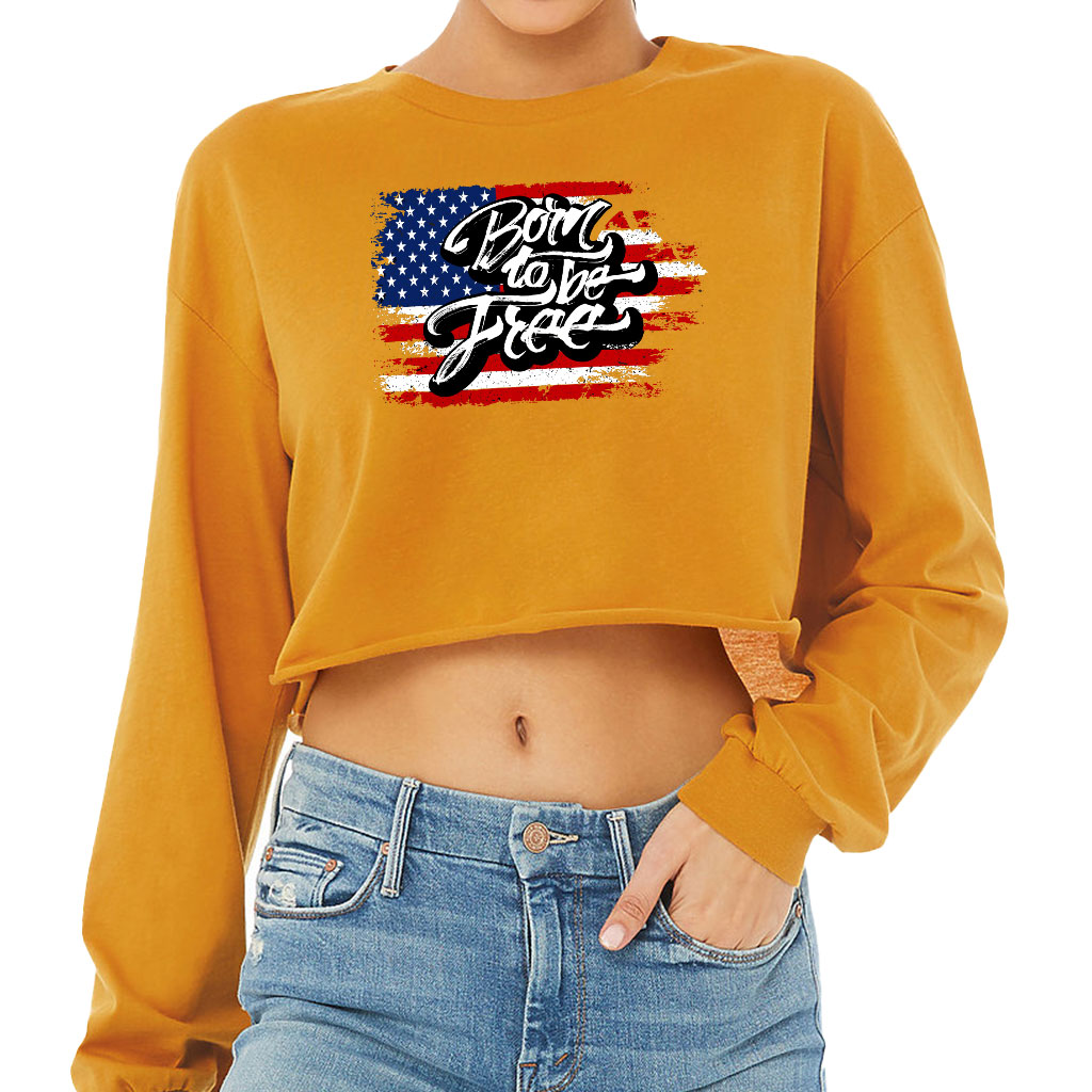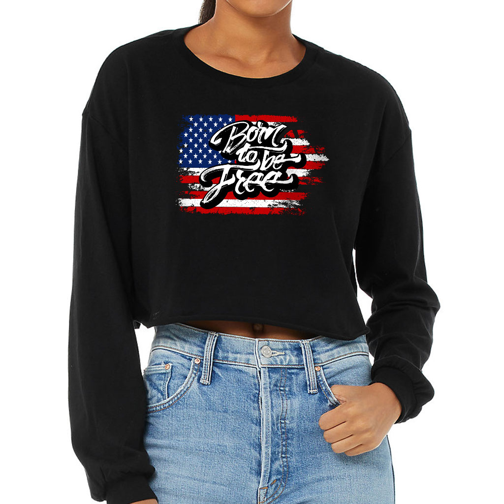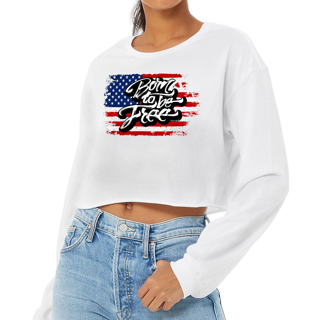 Born to Be Free Cropped Long Sleeve T-Shirt – Gift for Her – Items for USA Lovers