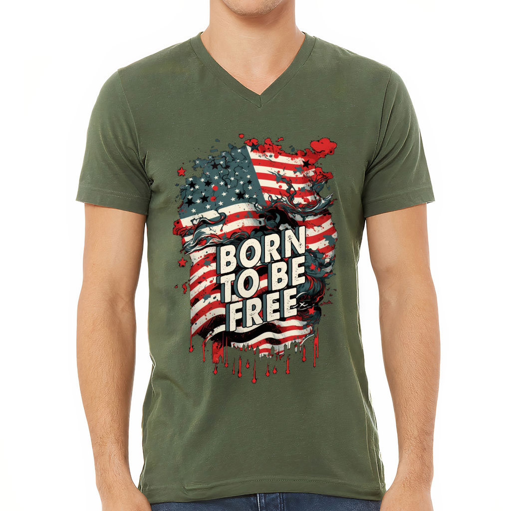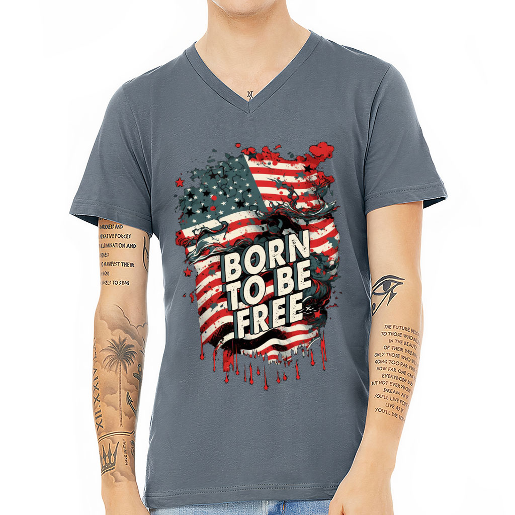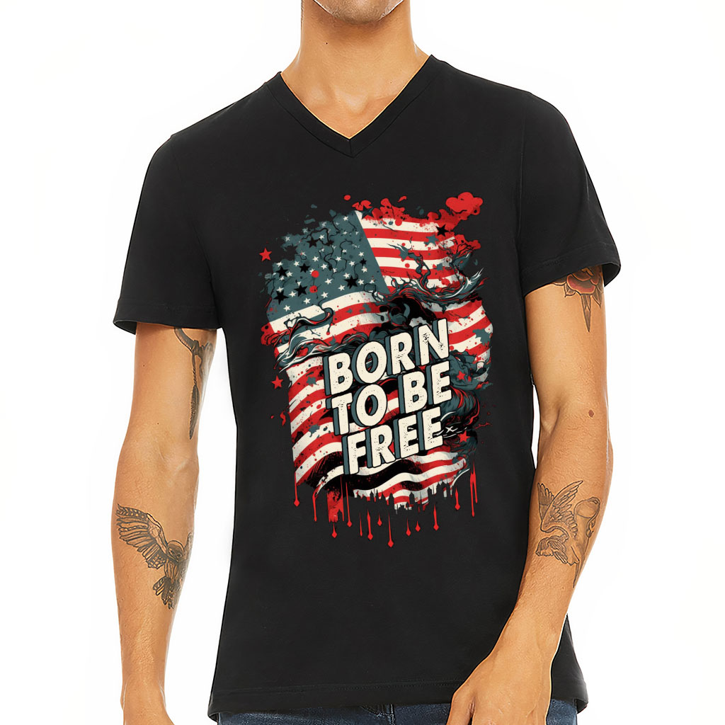 Born to Be Free V-Neck T-Shirt – Art T-Shirt – Paint V-Neck Tee