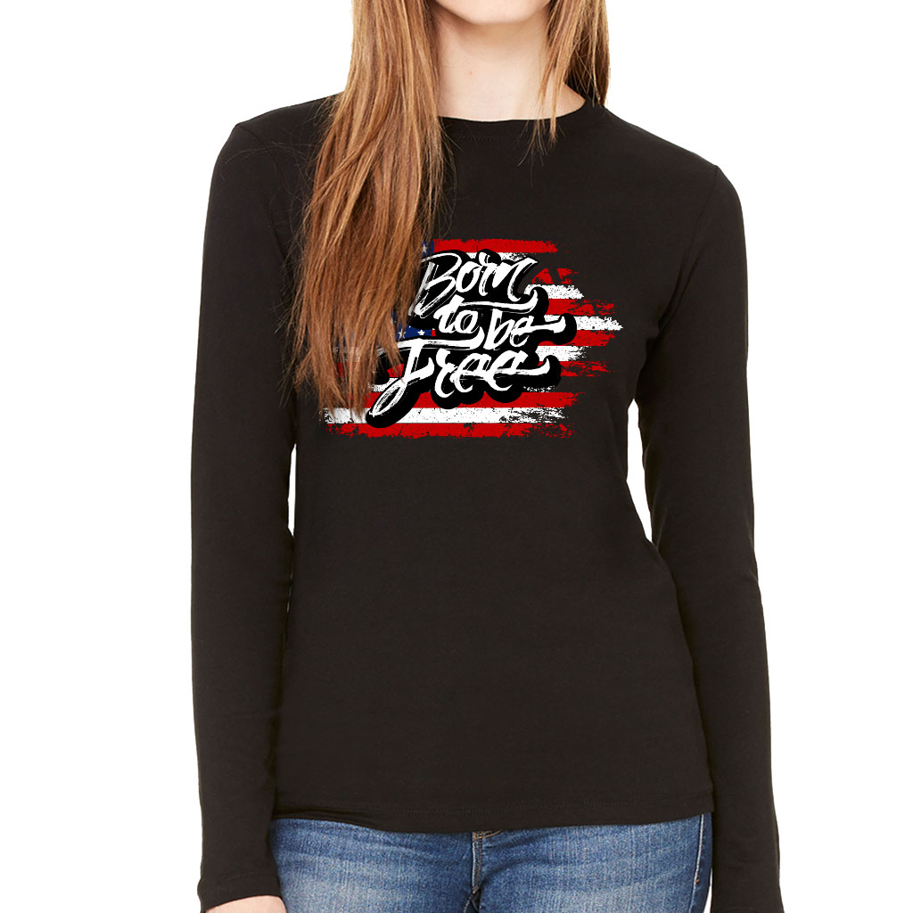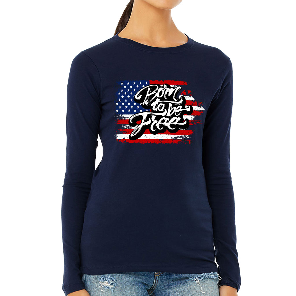 Born to Be Free Women’s Long Sleeve T-Shirt – Items for USA Lovers – Gift for Her