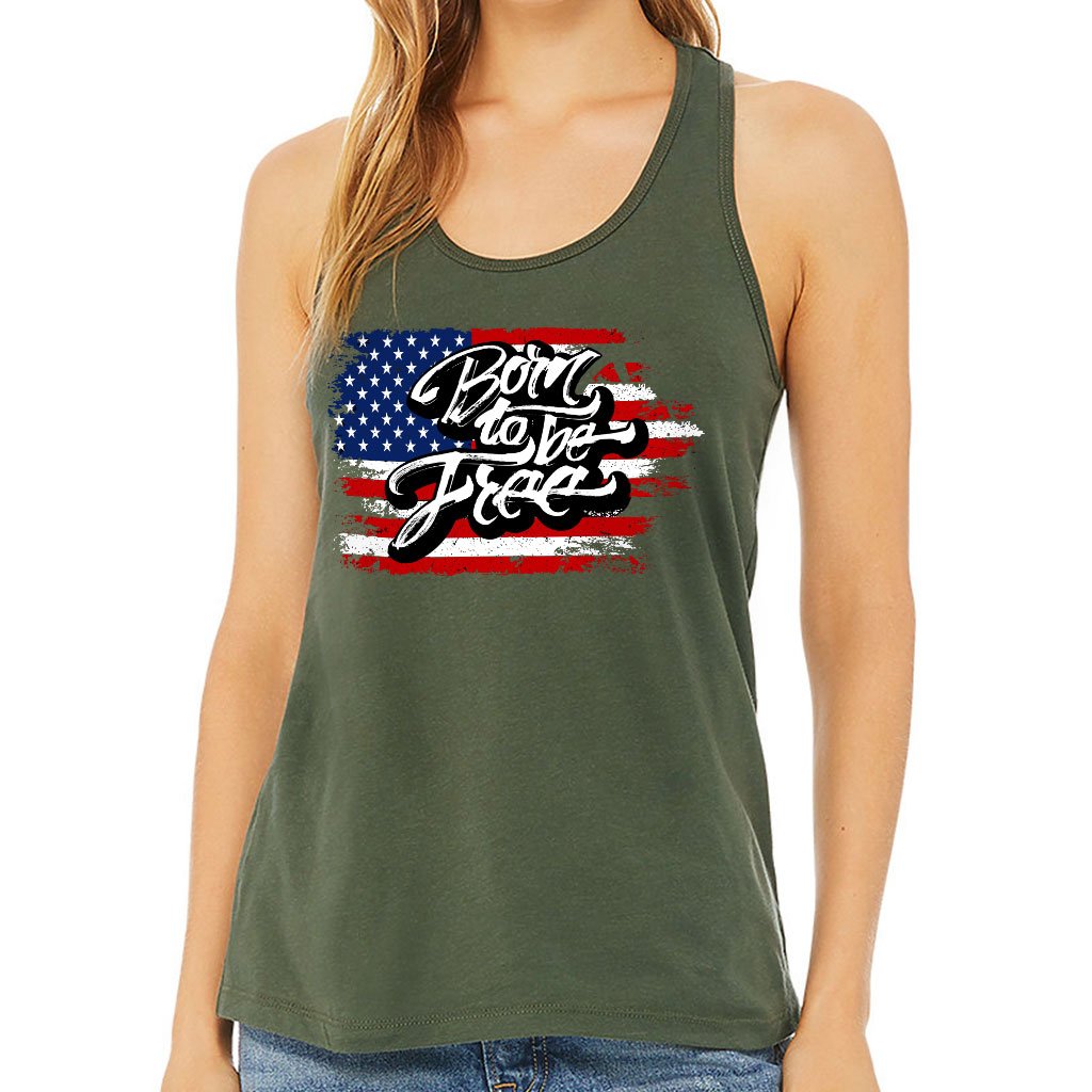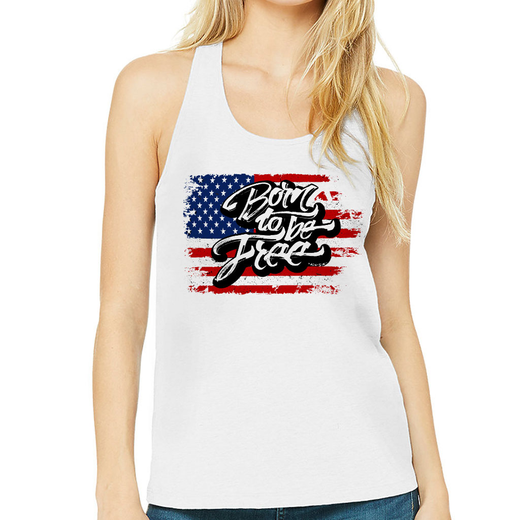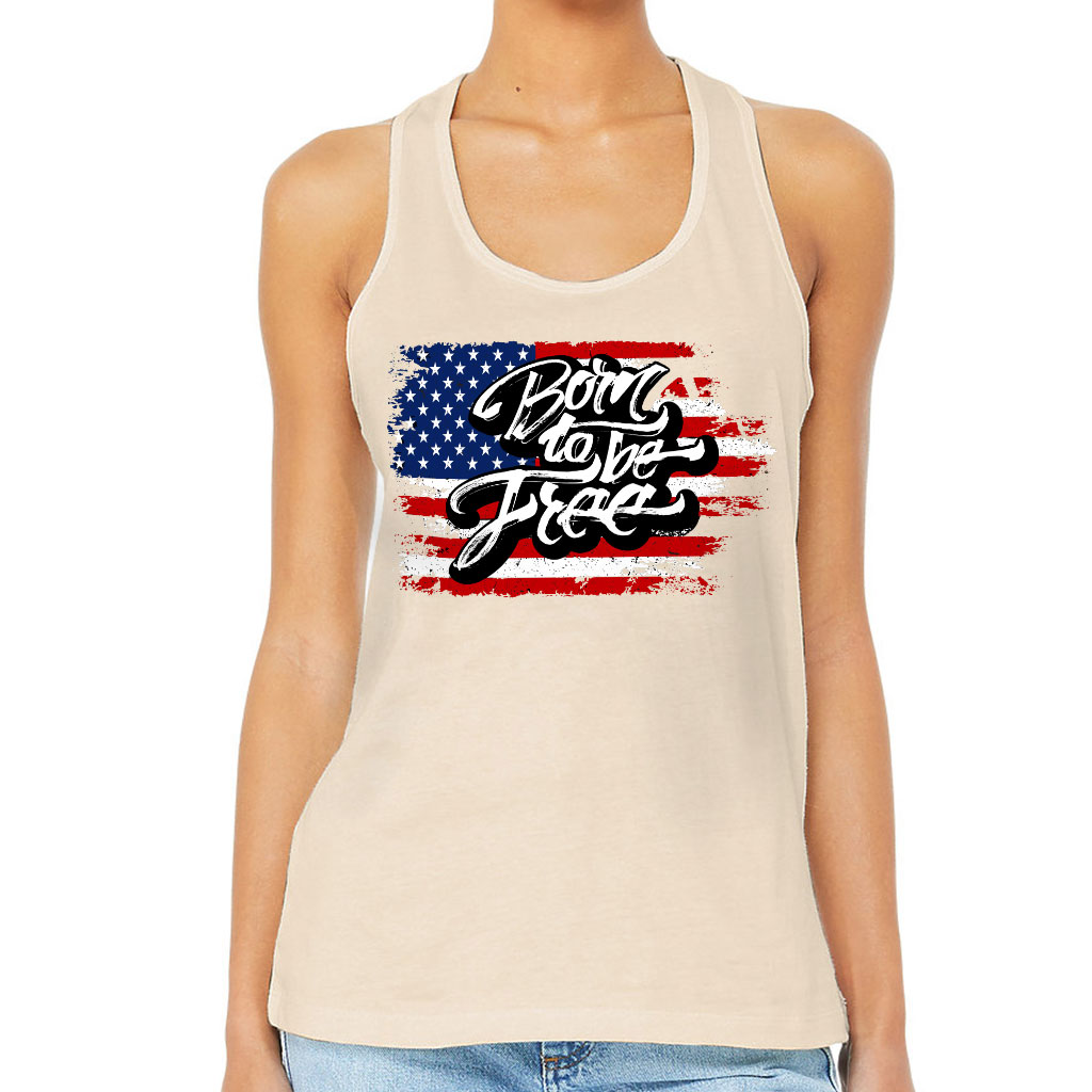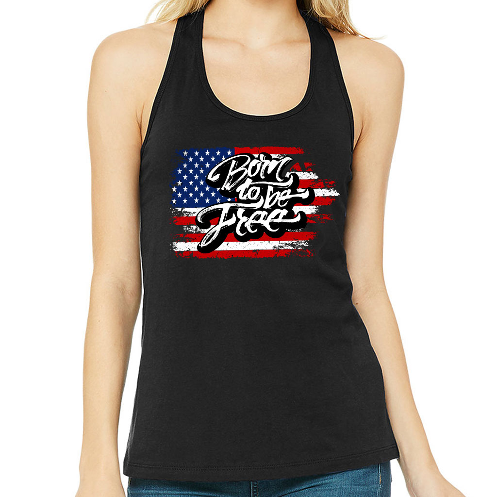 Born to Be Free Women’s Racerback Tank – Items for USA Lovers – Gift for Her