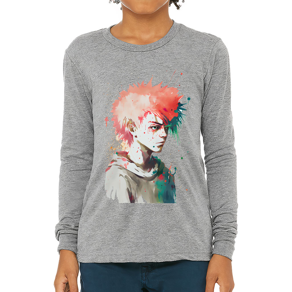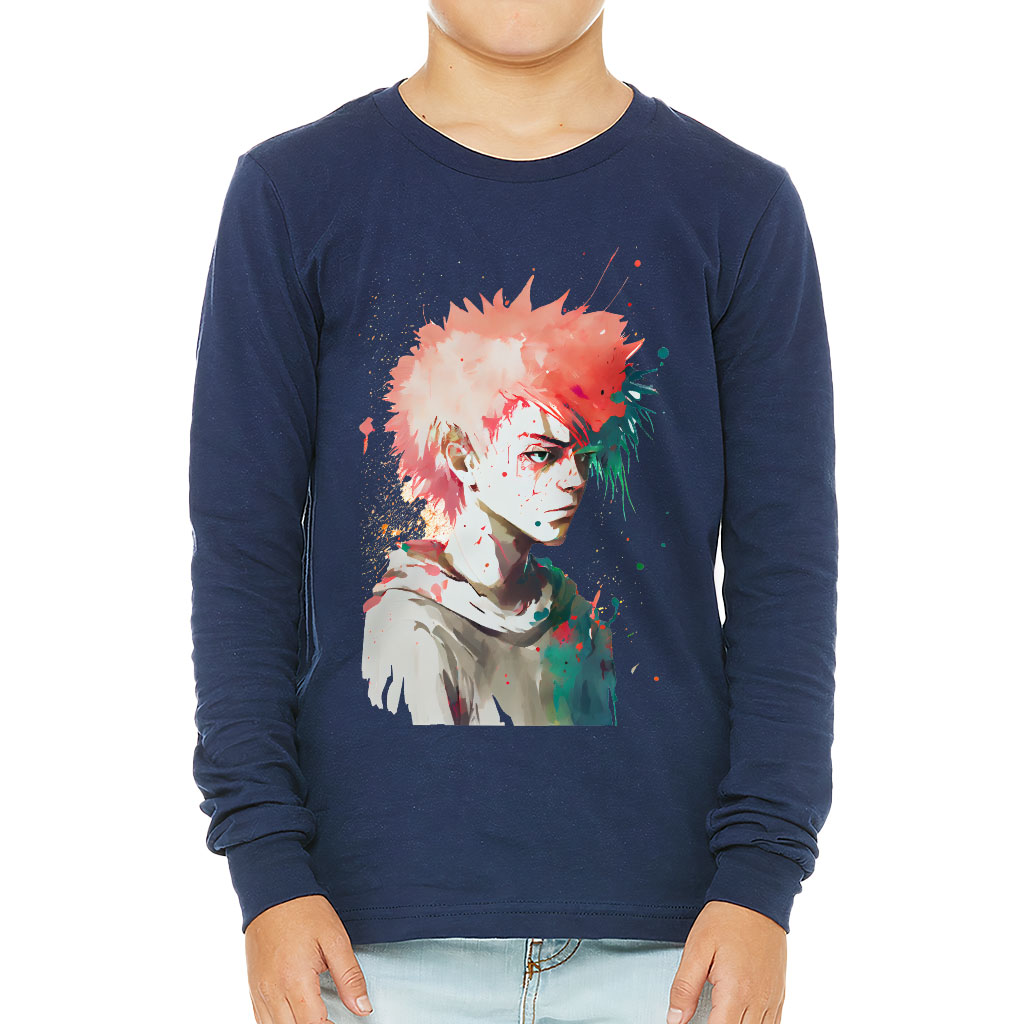 Boy Graphic Kids’ Long Sleeve T-Shirt – Painting T-Shirt – Colorful Long Sleeve Tee