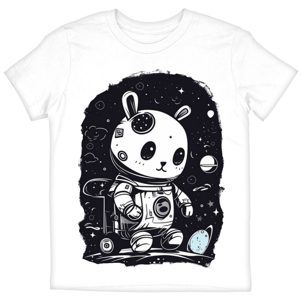 Bunny Astronaut Kids’ T-Shirt is no ordinary piece of clothing. Its crew neck and short