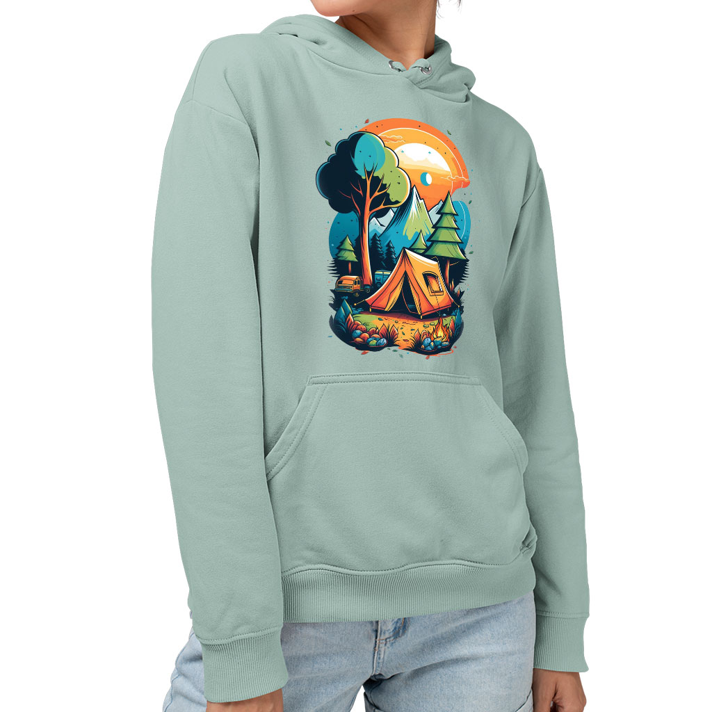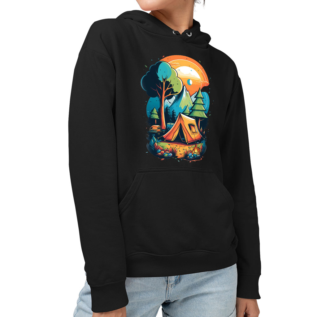 Camp Design Sponge Fleece Hoodie – Cartoon Hoodie – Themed Hooded Sweatshirt