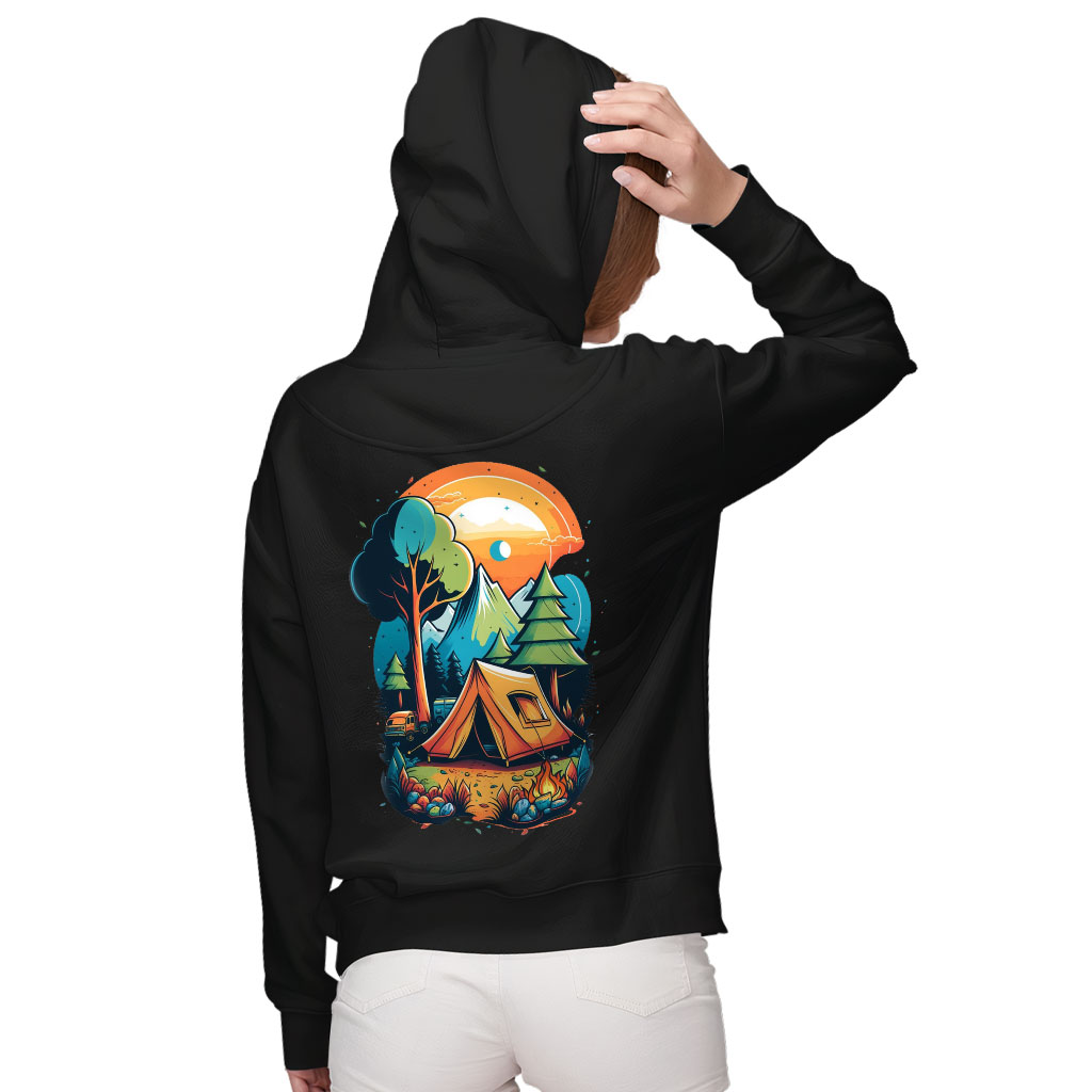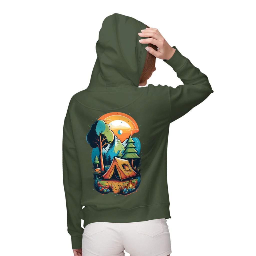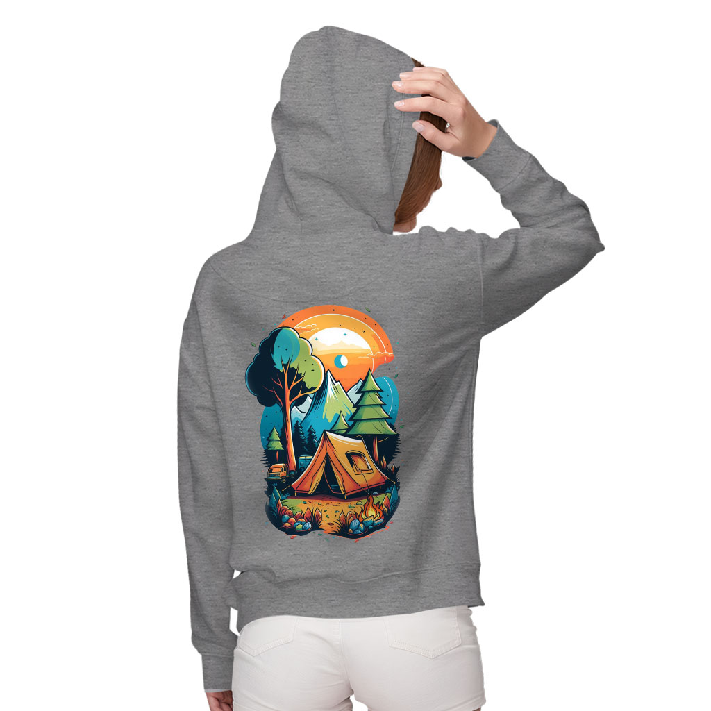 Camp Design Women’s Zip Hoodie – Cartoon Hooded Sweatshirt – Themed Hoodie