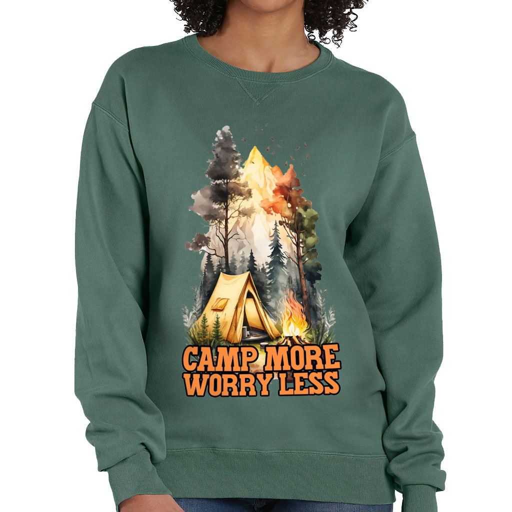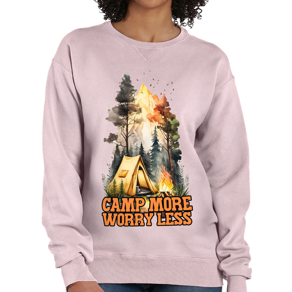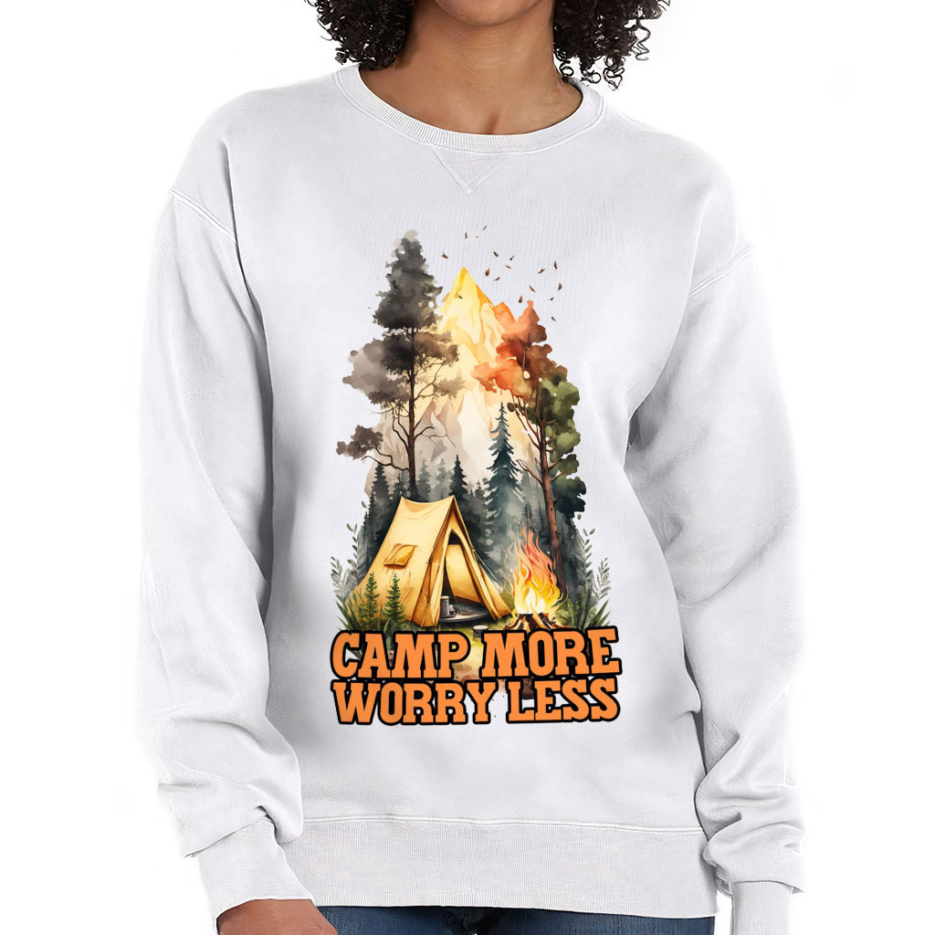 Camp More Worry Less Crewneck Sweatshirt – Watercolor Women’s Sweatshirt – Printed Sweatshirt