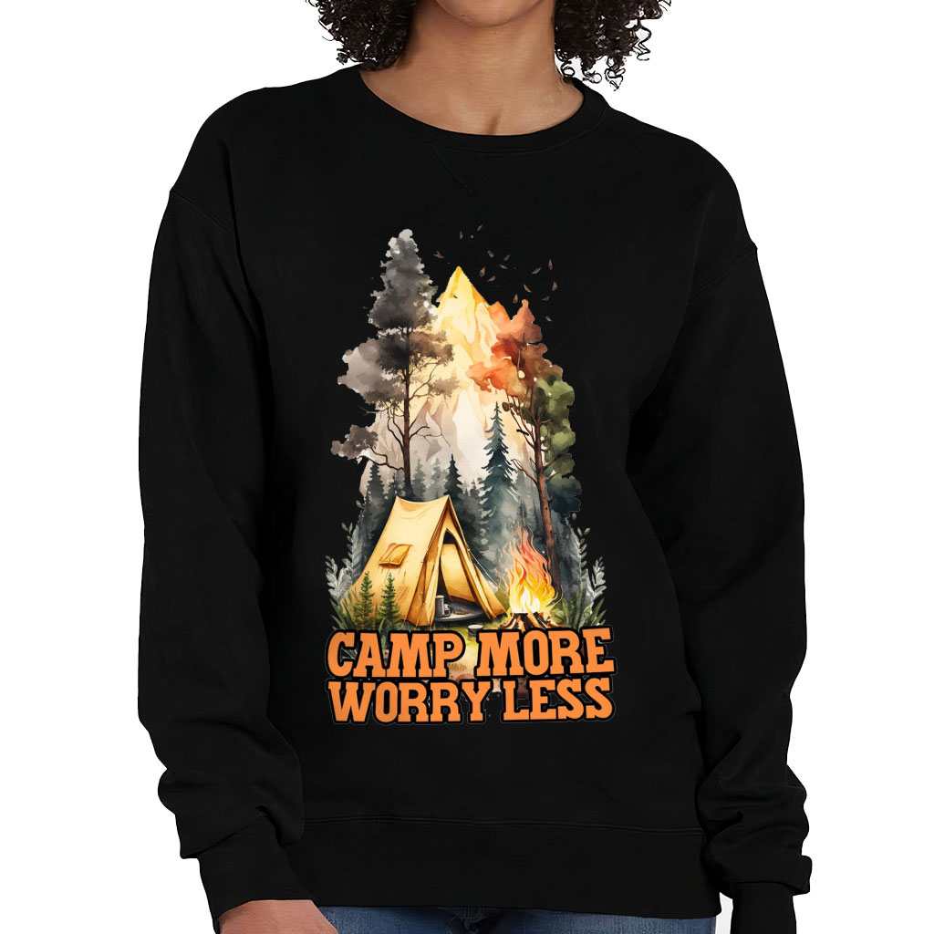 Made of soft, skin-friendly high-quality cotton and polyester material, breathable and cozy to wear without a scratch. Camp More Worry Less Crewneck Sweatshirt is great to wear on cold mornings, spring, fall, or winter days, adding more warmth without bulk.