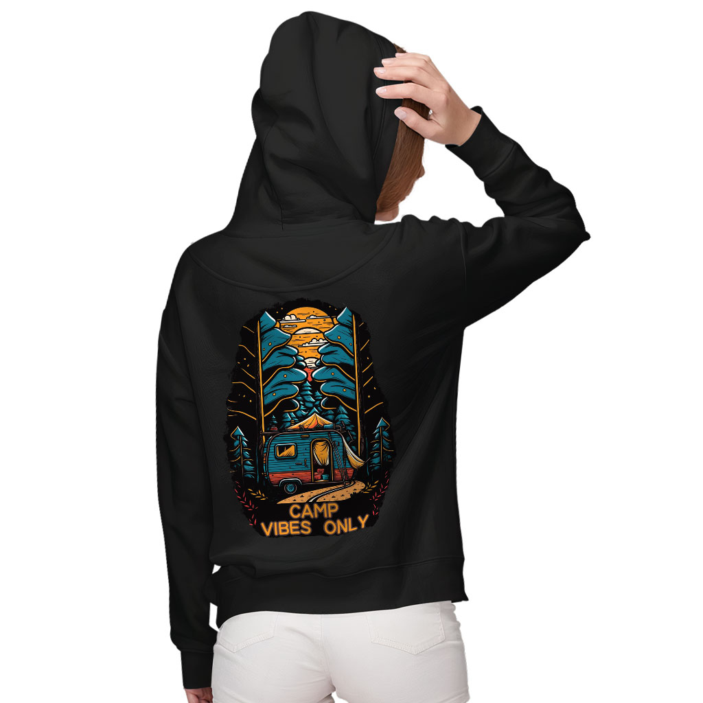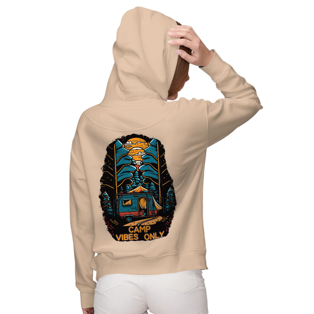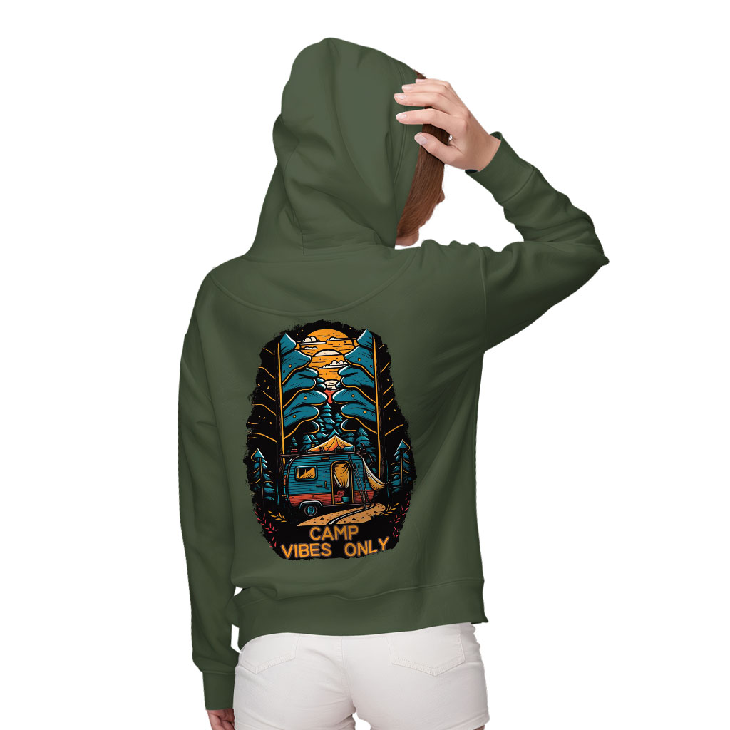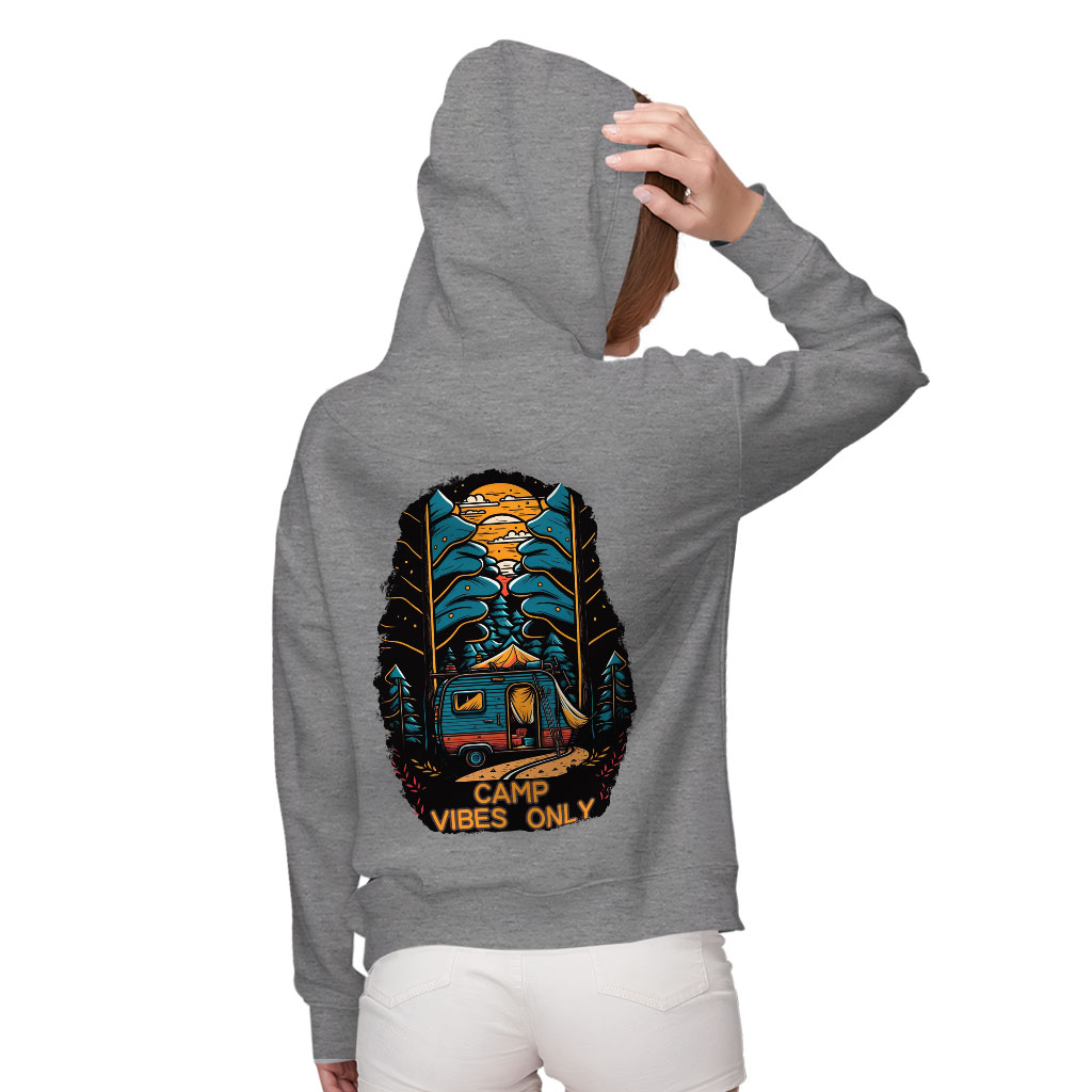 Camp Vibes Women’s Zip Hoodie – Printed Hooded Sweatshirt – Cool Art Hoodie