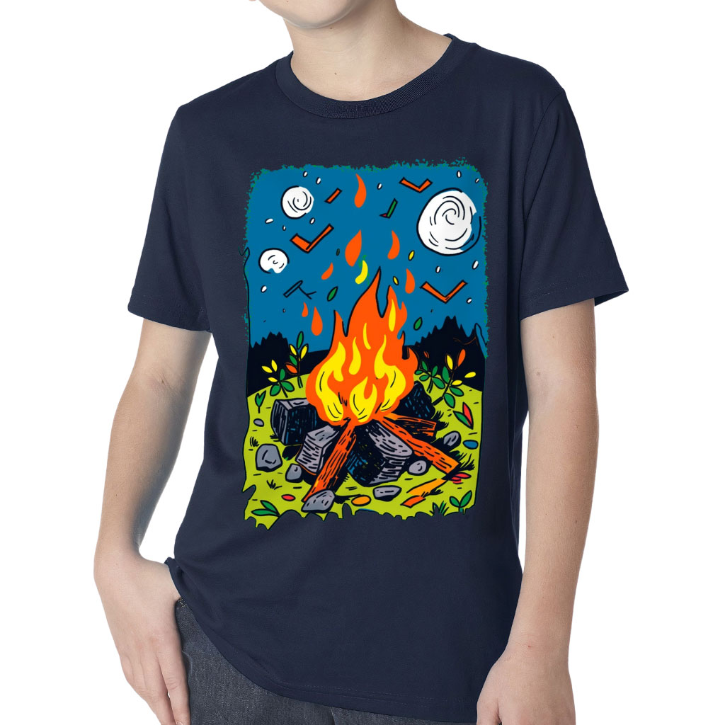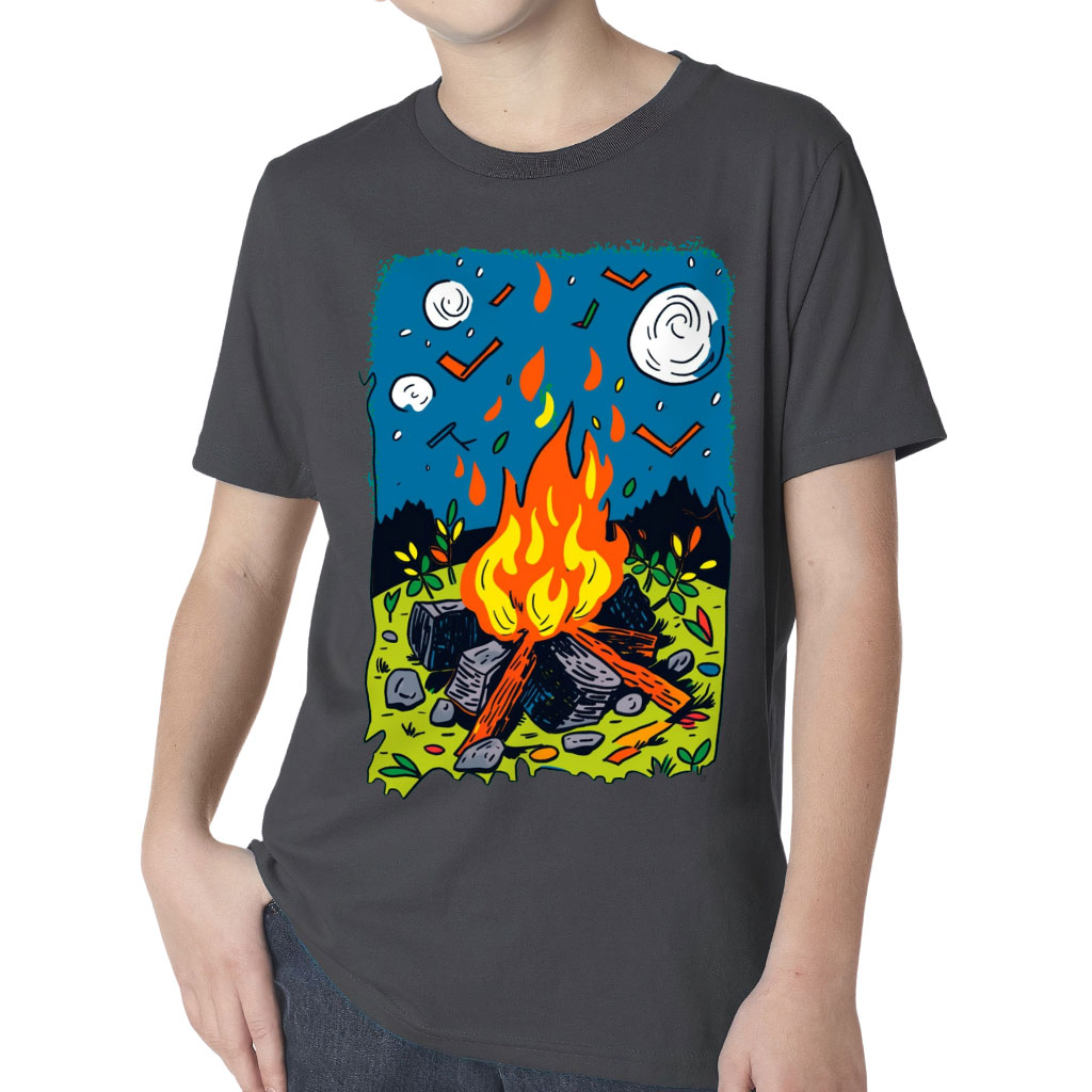 Campfire Design Kids’ Classic Fit T-Shirt – Cartoon T-Shirt – Graphic Art Classic Fit Tee