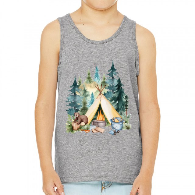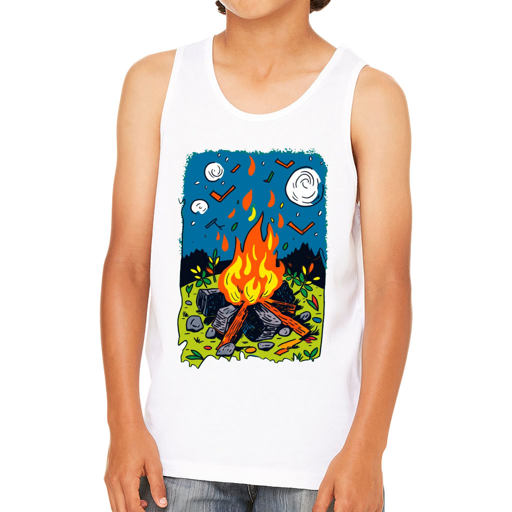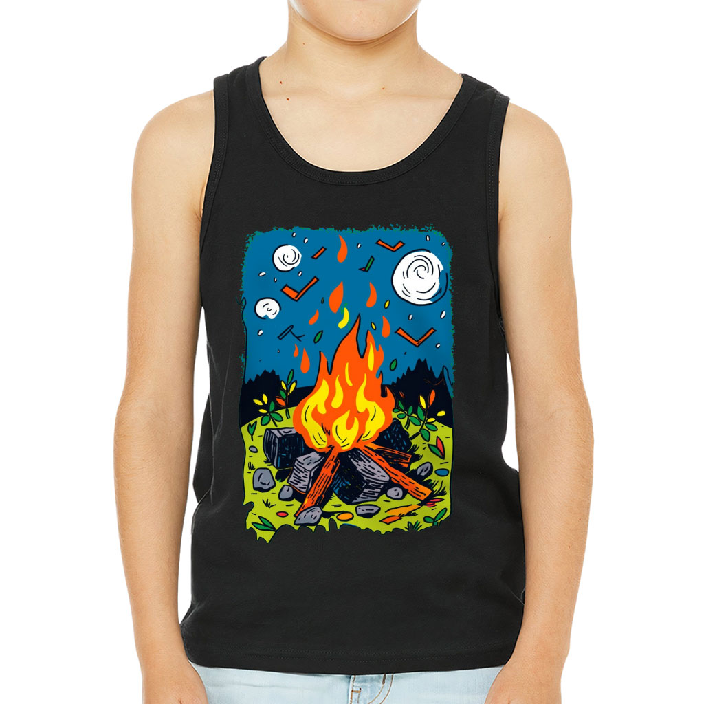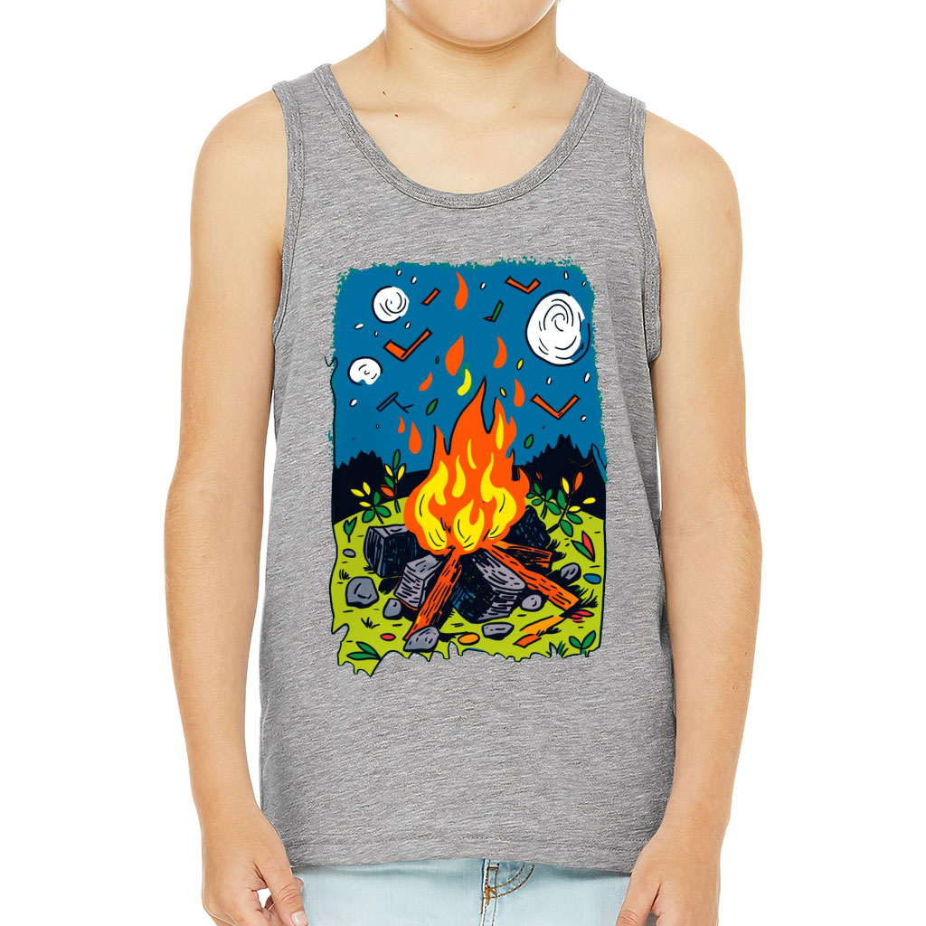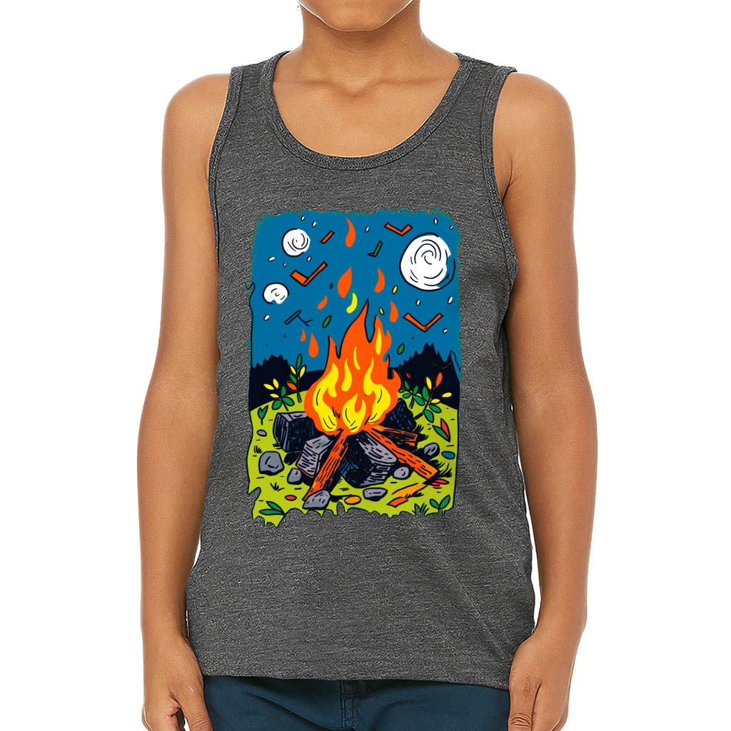 Campfire Design Kids’ Jersey Tank – Cartoon Sleeveless T-Shirt – Graphic Art Kids’ Tank Top