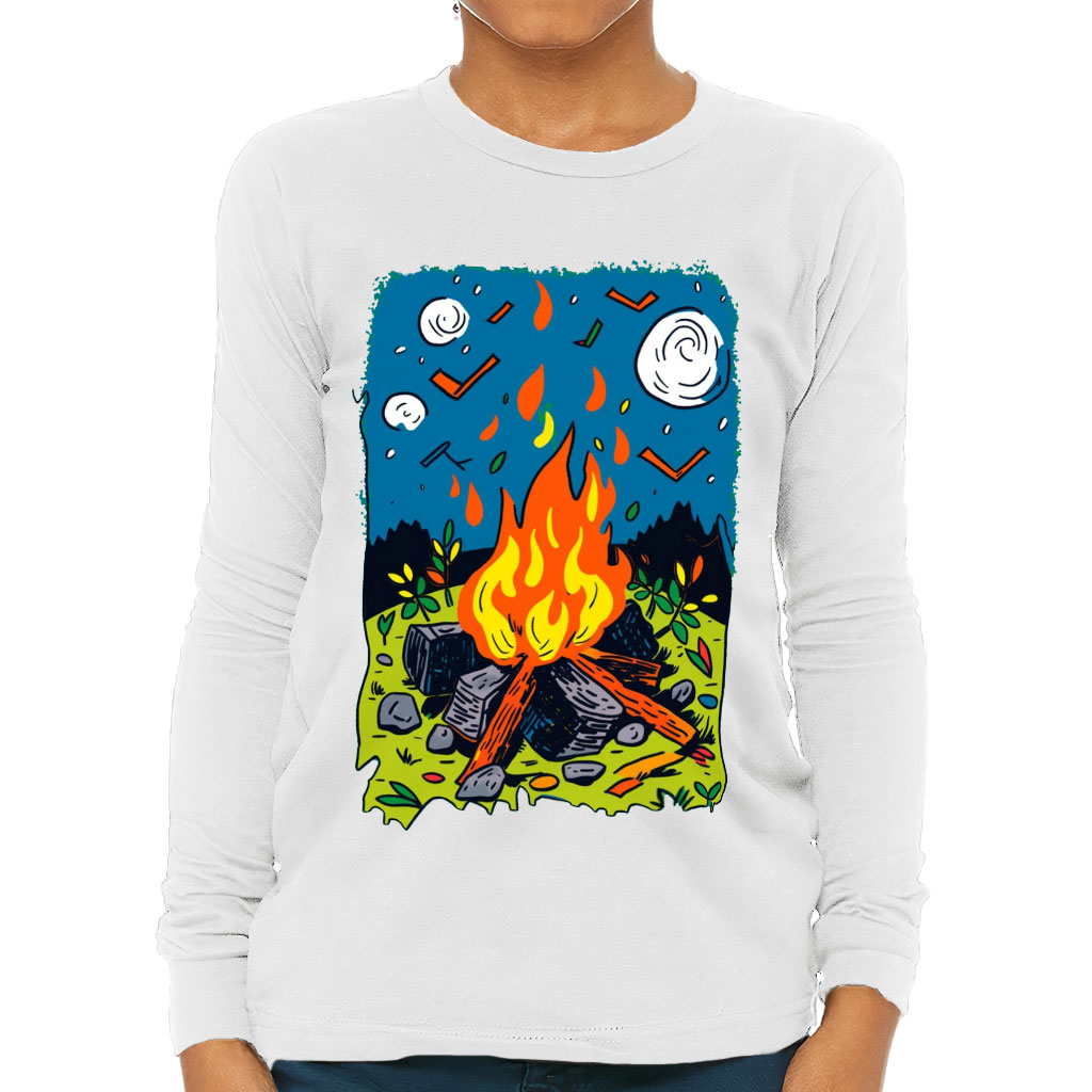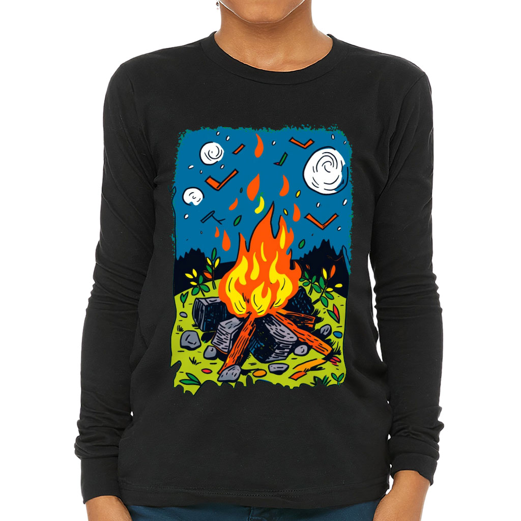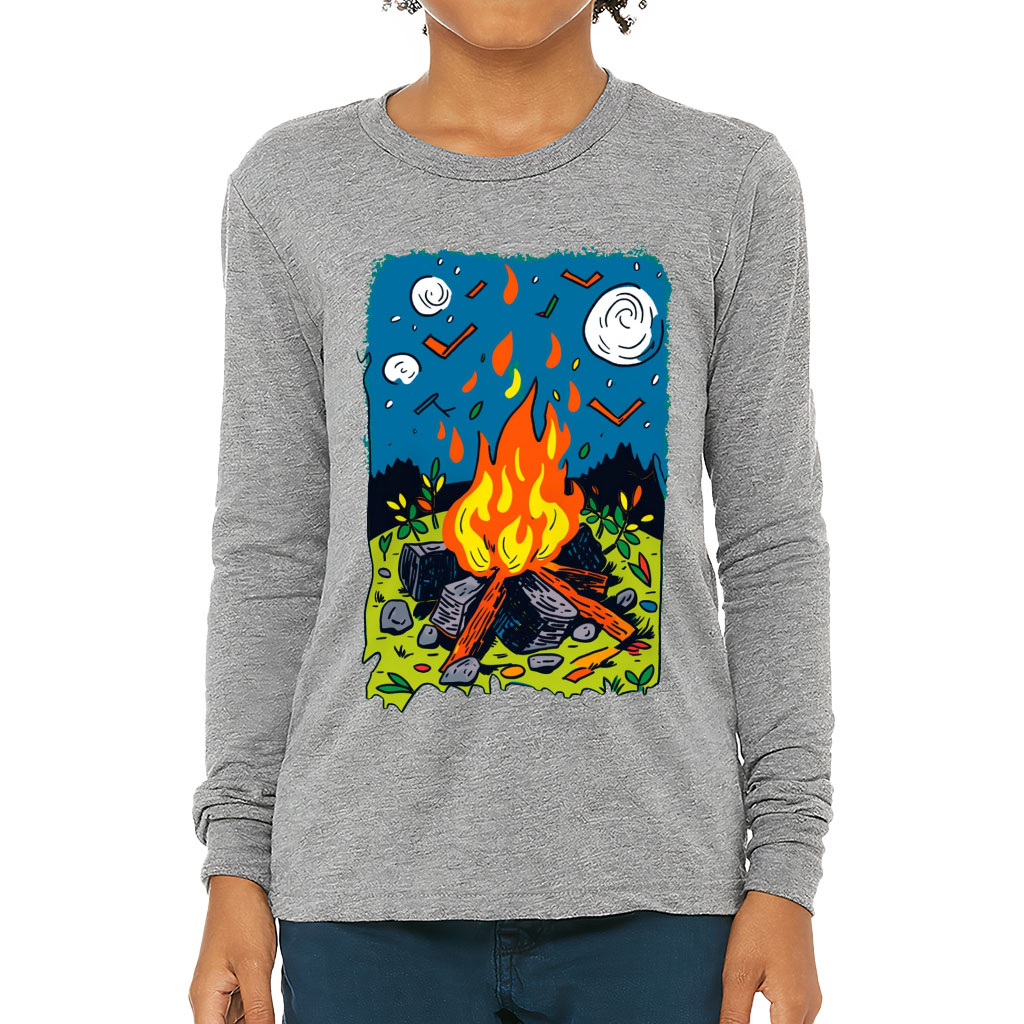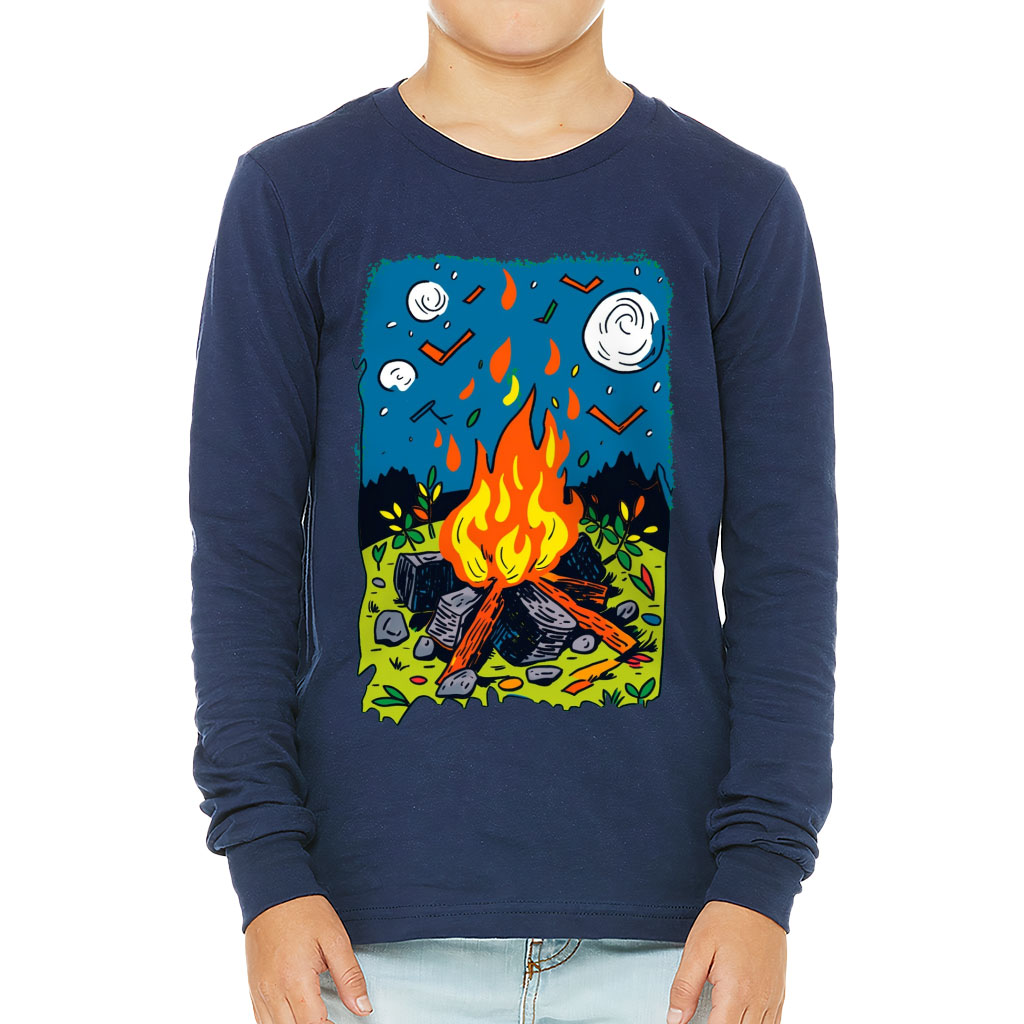 Campfire Design Kids’ Long Sleeve T-Shirt – Cartoon T-Shirt – Graphic Art Long Sleeve Tee