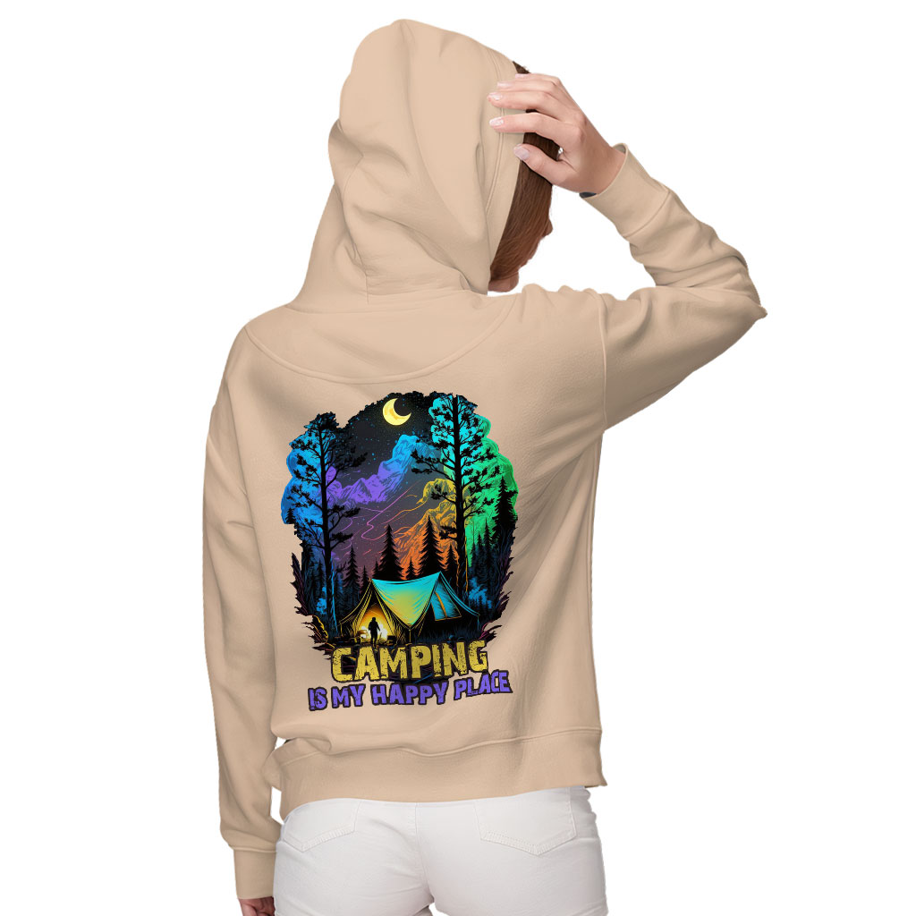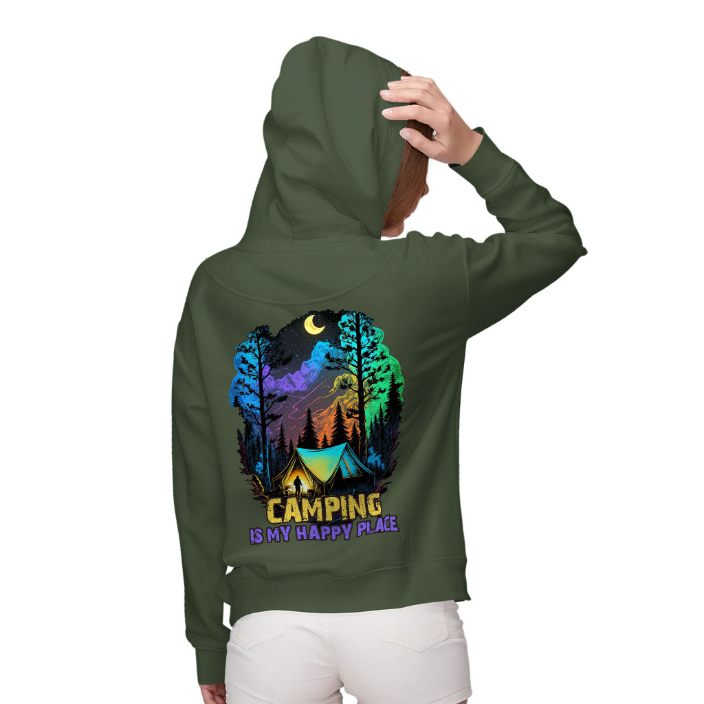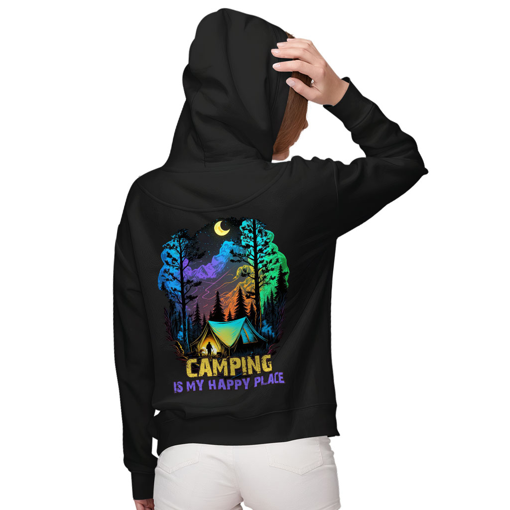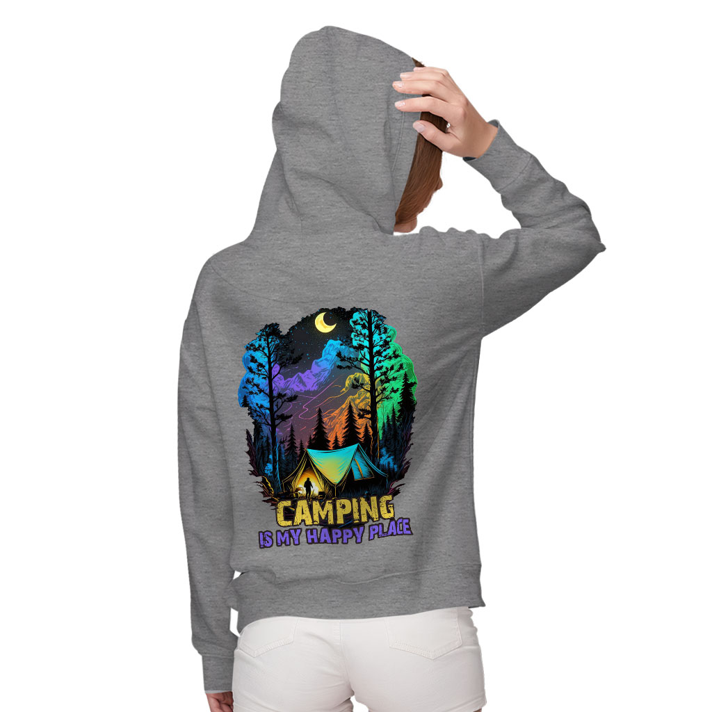 Camping Is My Happy Place Women’s Zip Hoodie – Nature Hooded Sweatshirt – Graphic Hoodie
