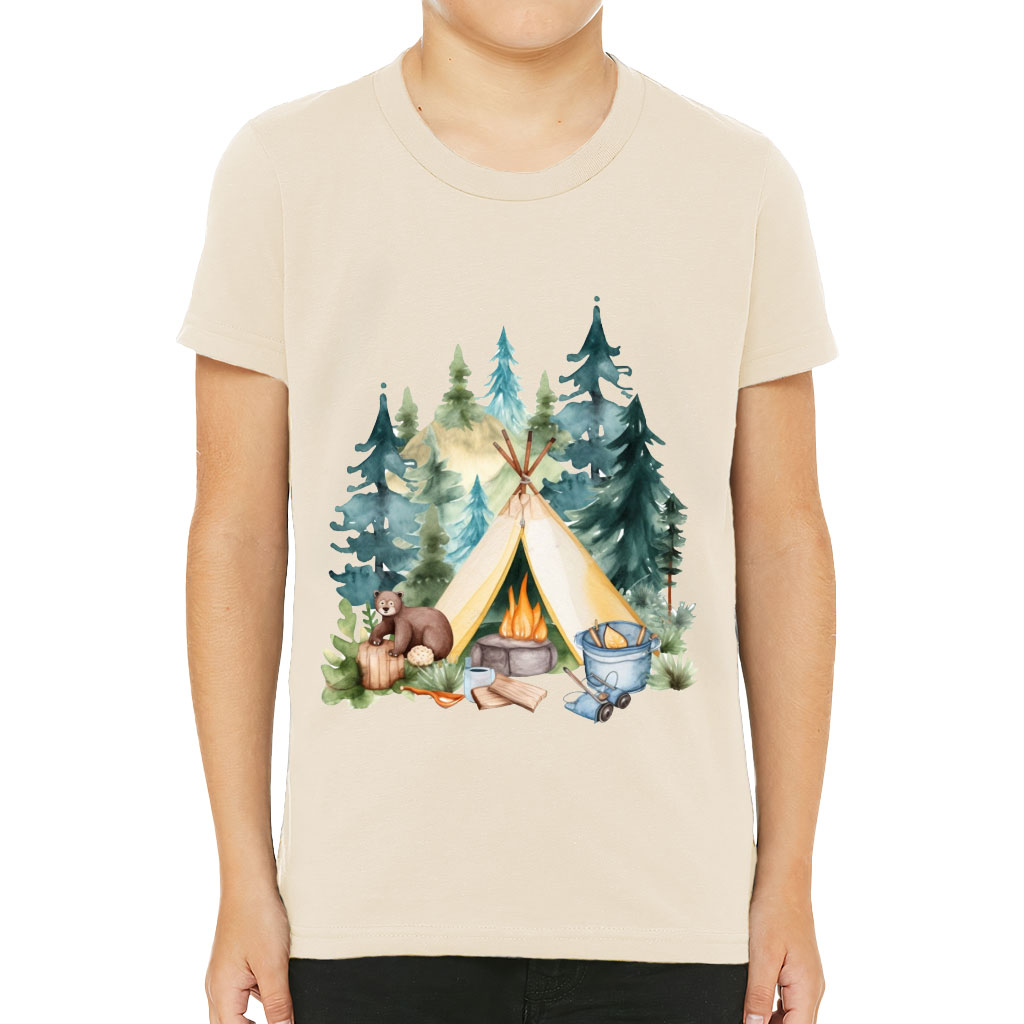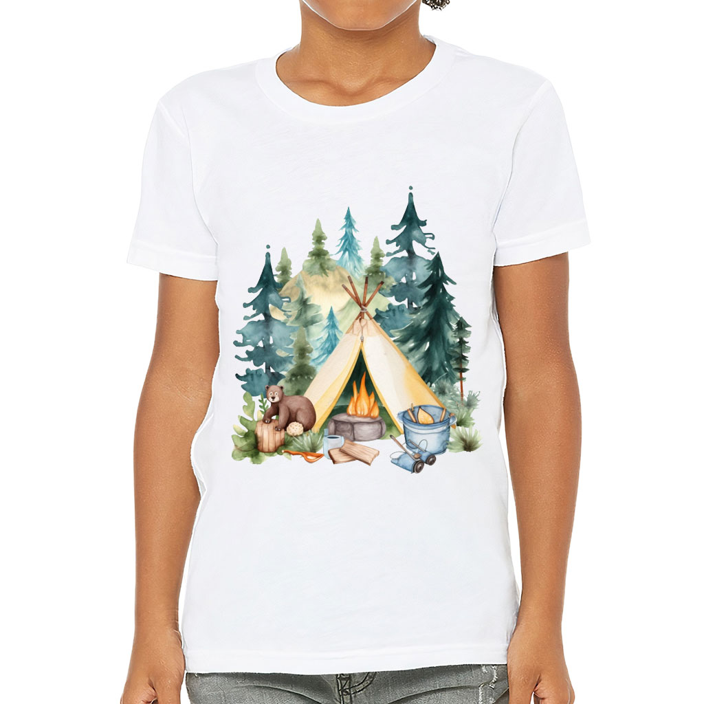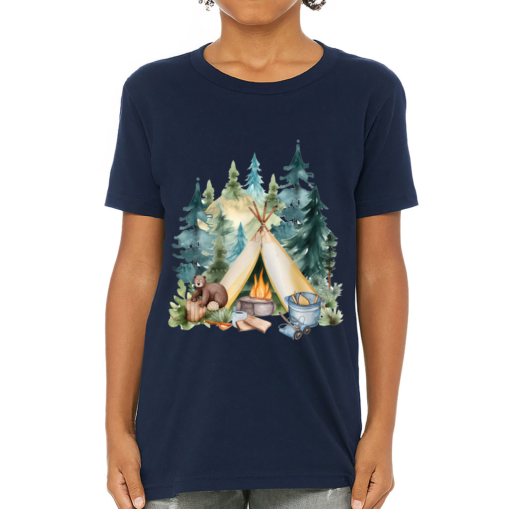 Camping Scene Kids’ T-Shirt – Cute Art T-Shirt – Illustration Tee Shirt for Kids