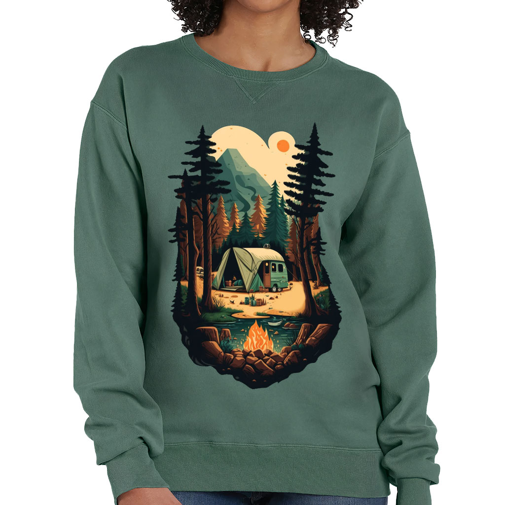 Camping Themed Crewneck Sweatshirt – Forest Women’s Sweatshirt – Cool Sweatshirt