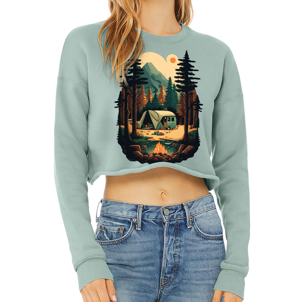 Camping Themed Cropped Sweatshirt – Forest Women’s Sweatshirt – Cool Crop Crew Sweatshirt