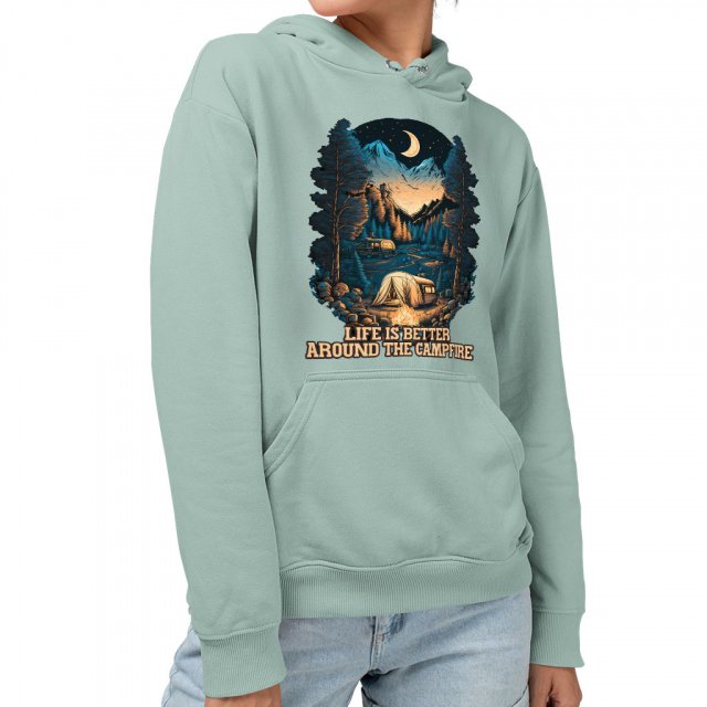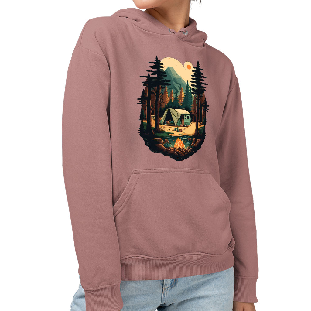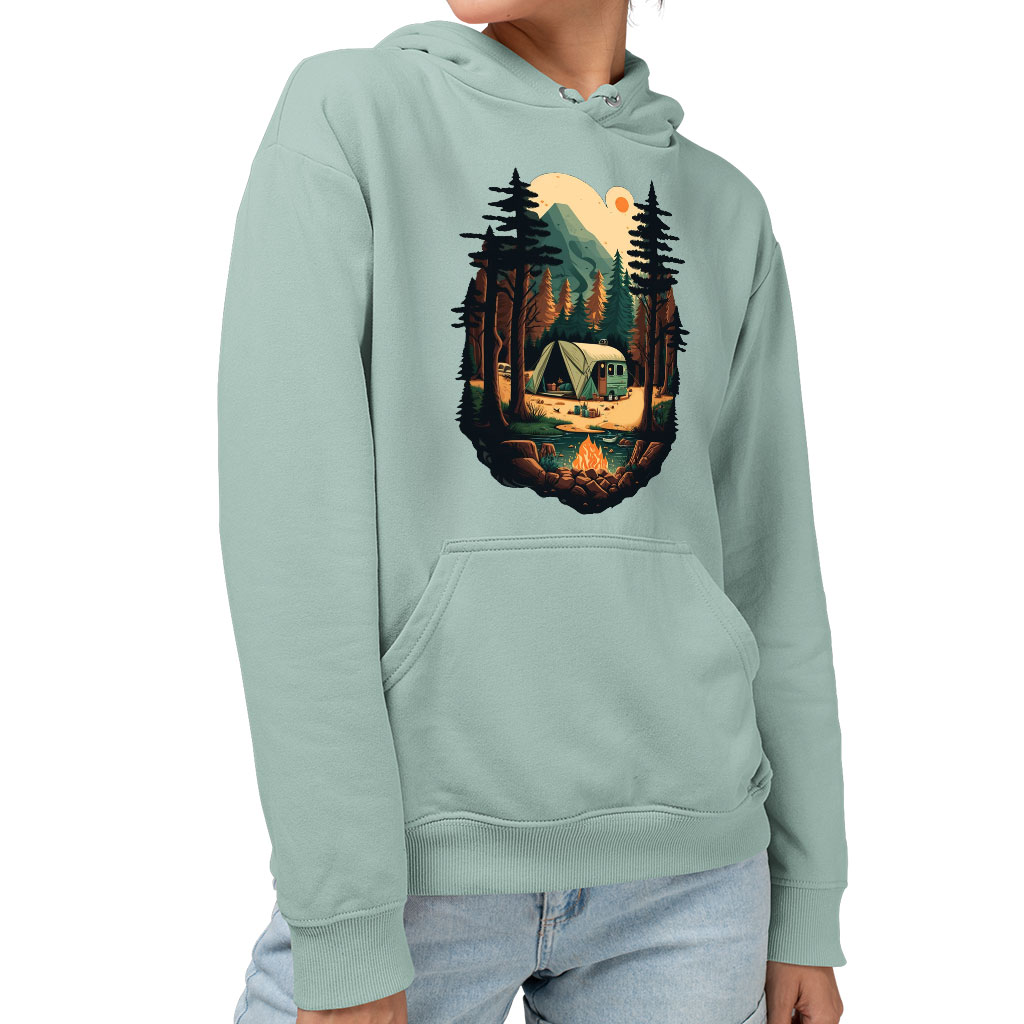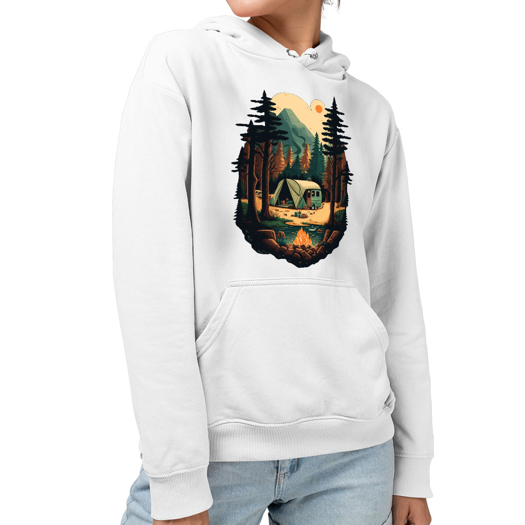 Camping Themed Sponge Fleece Hoodie – Forest Hoodie – Cool Hooded Sweatshirt
