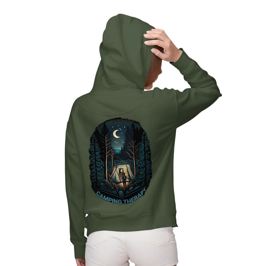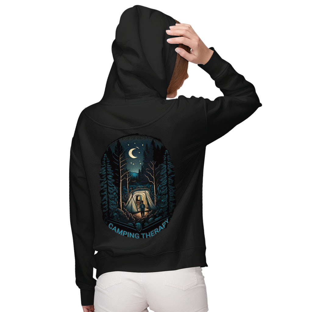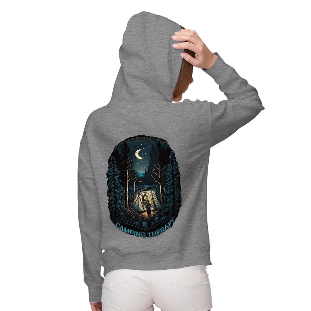 Camping Therapy Women’s Zip Hoodie – Cool Hooded Sweatshirt – Unique Design Hoodie