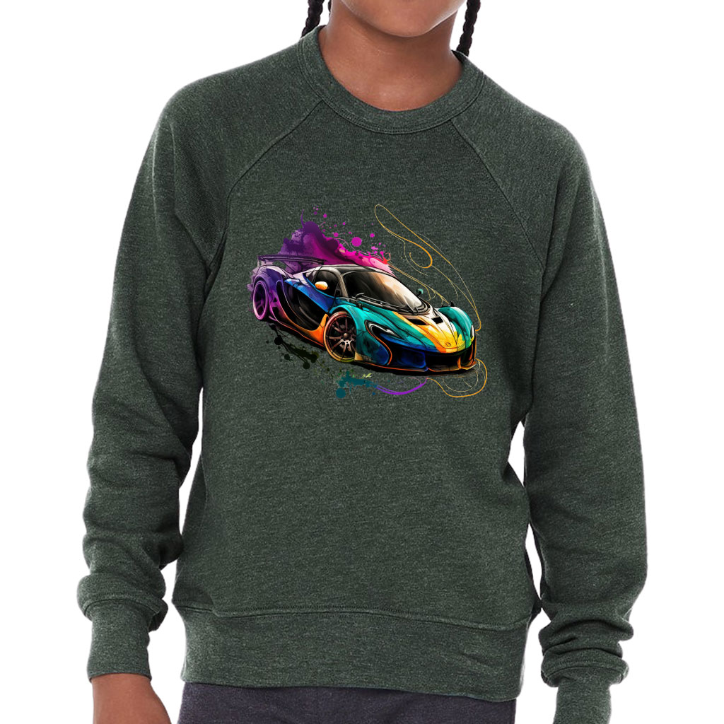 Car Design Kids’ Raglan Sweatshirt – Cool Sponge Fleece Sweatshirt – Graphic Sweatshirt