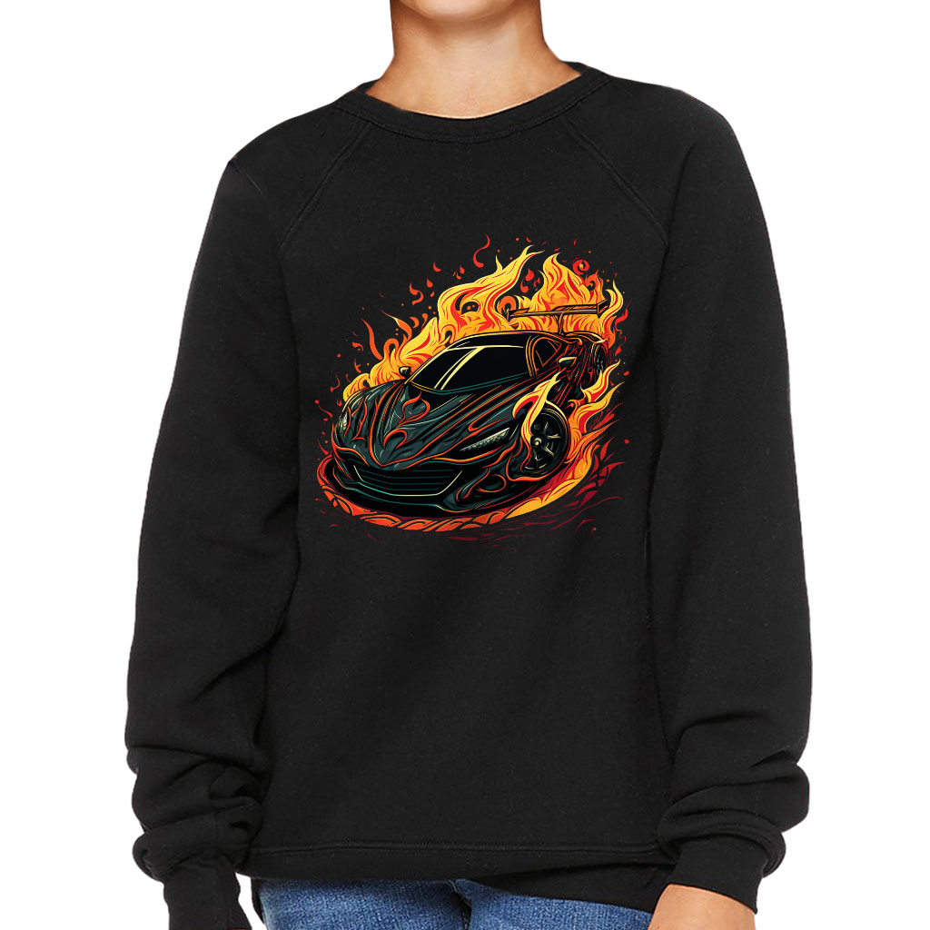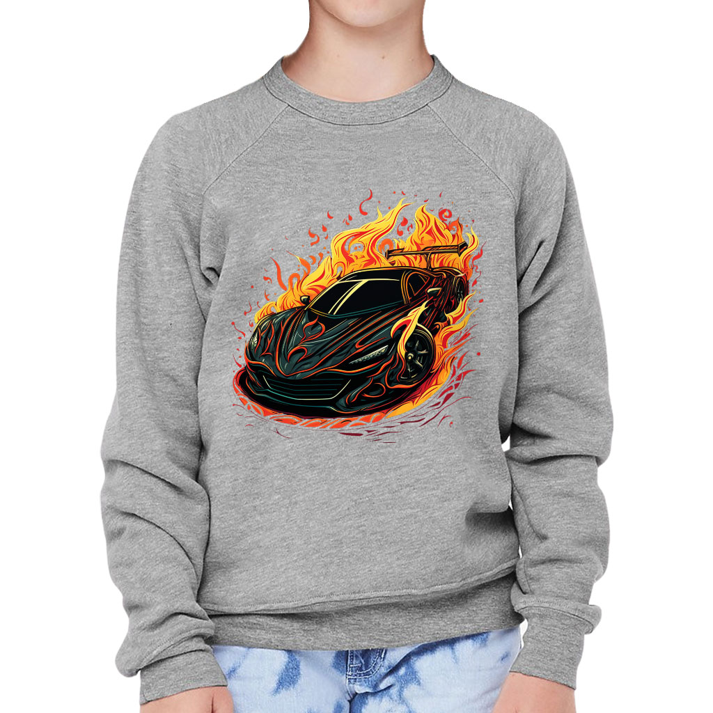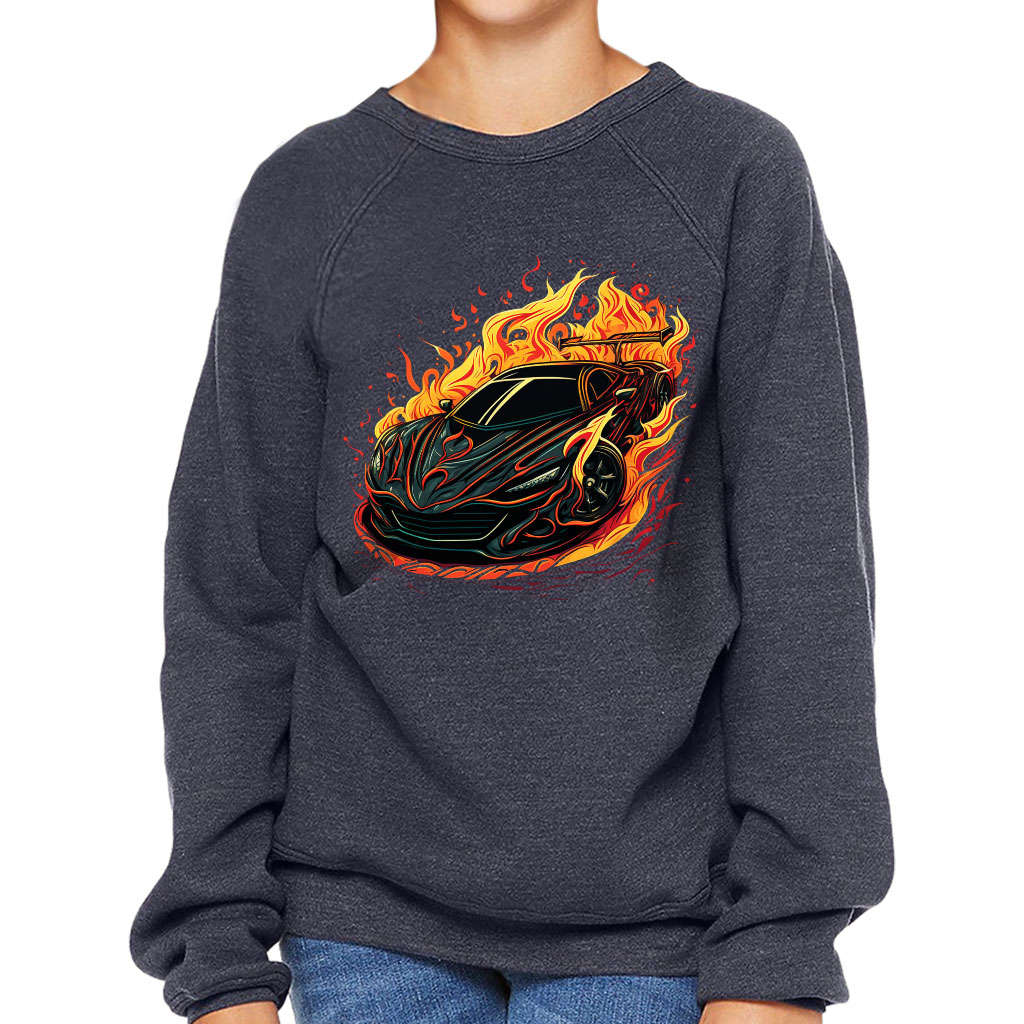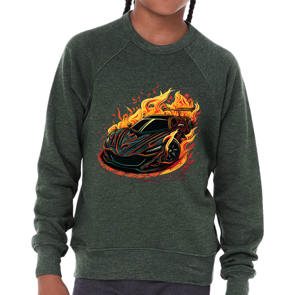 Car Graphic Kids’ Raglan Sweatshirt – Cool Art Sponge Fleece Sweatshirt – Themed Sweatshirt