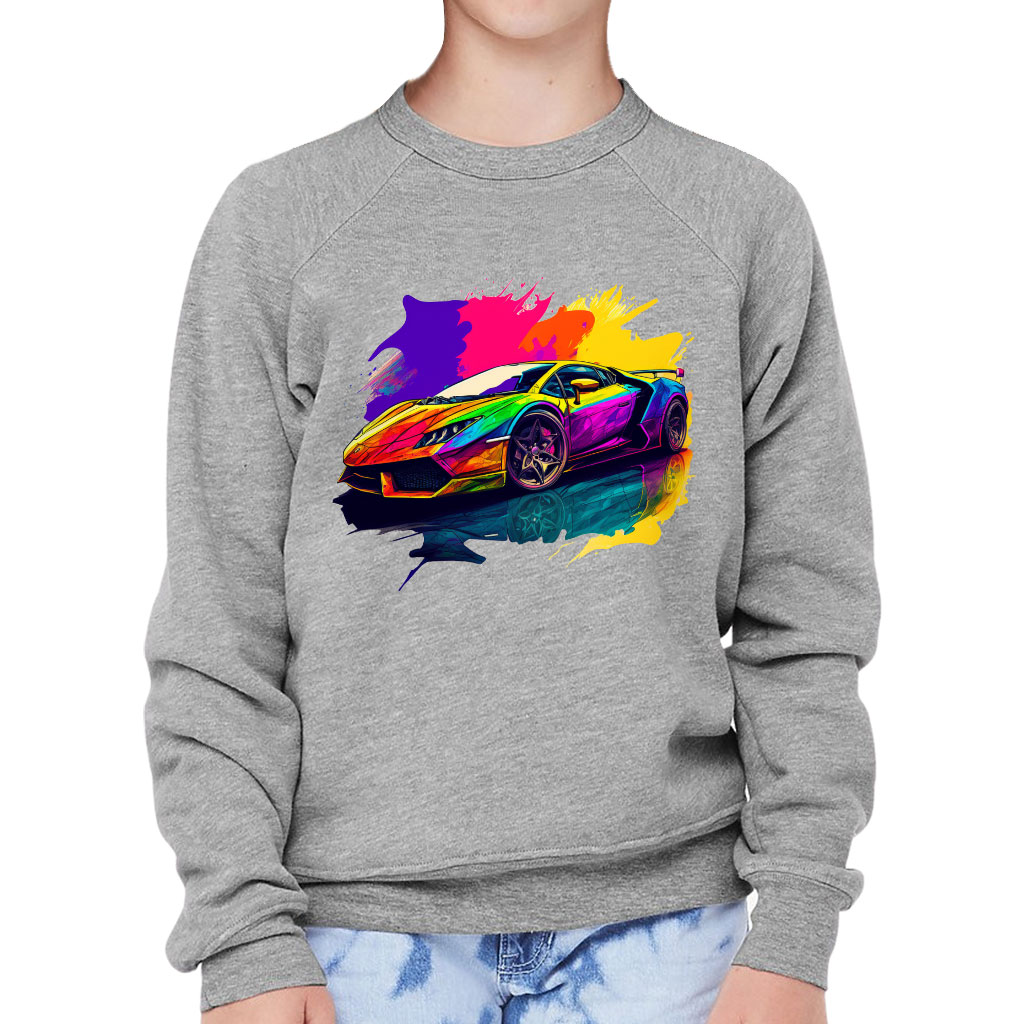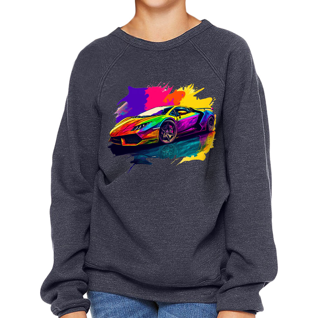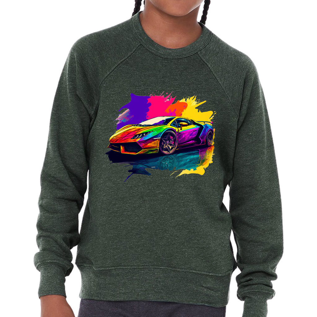 Car Print Kids’ Raglan Sweatshirt – Colorful Sponge Fleece Sweatshirt – Illustration Sweatshirt