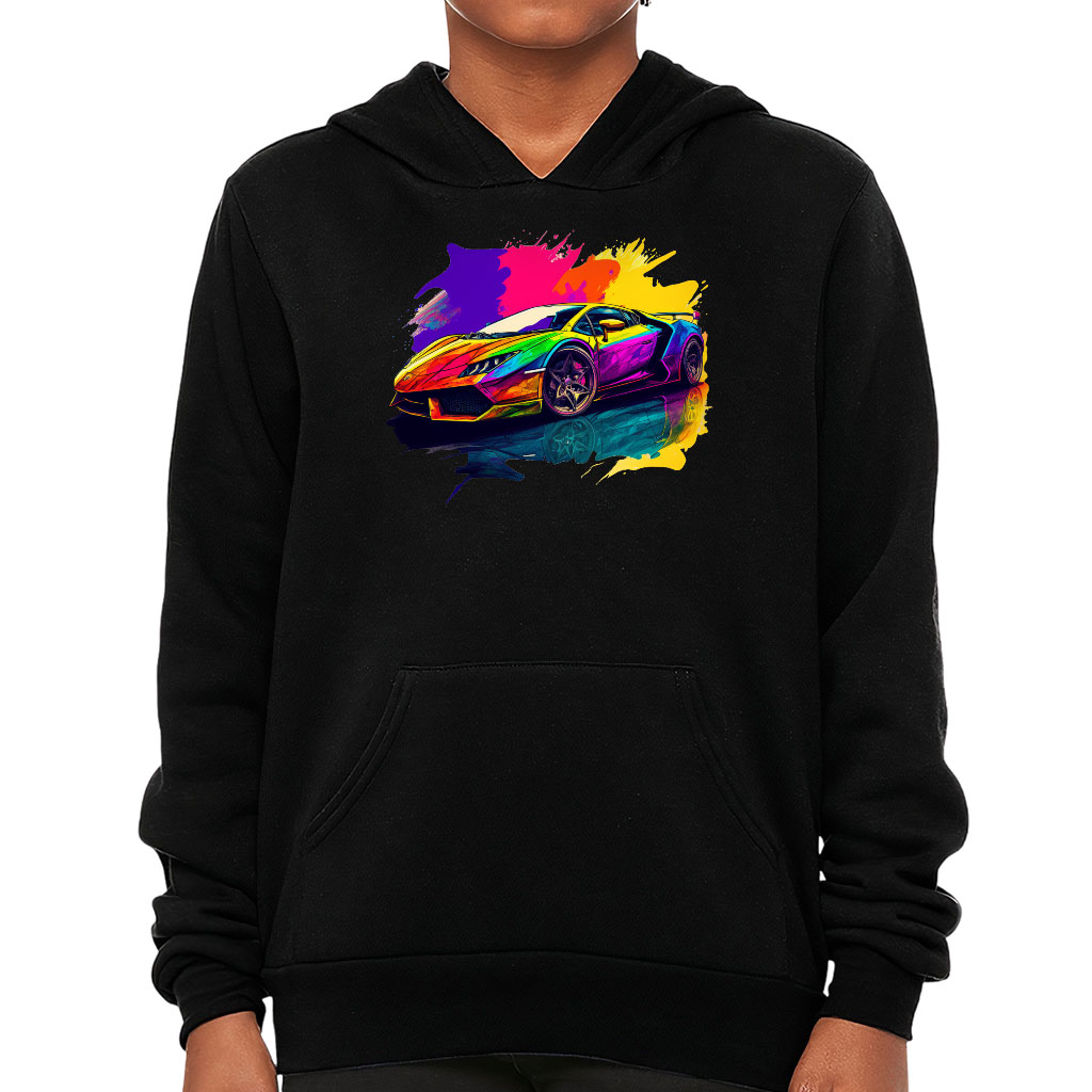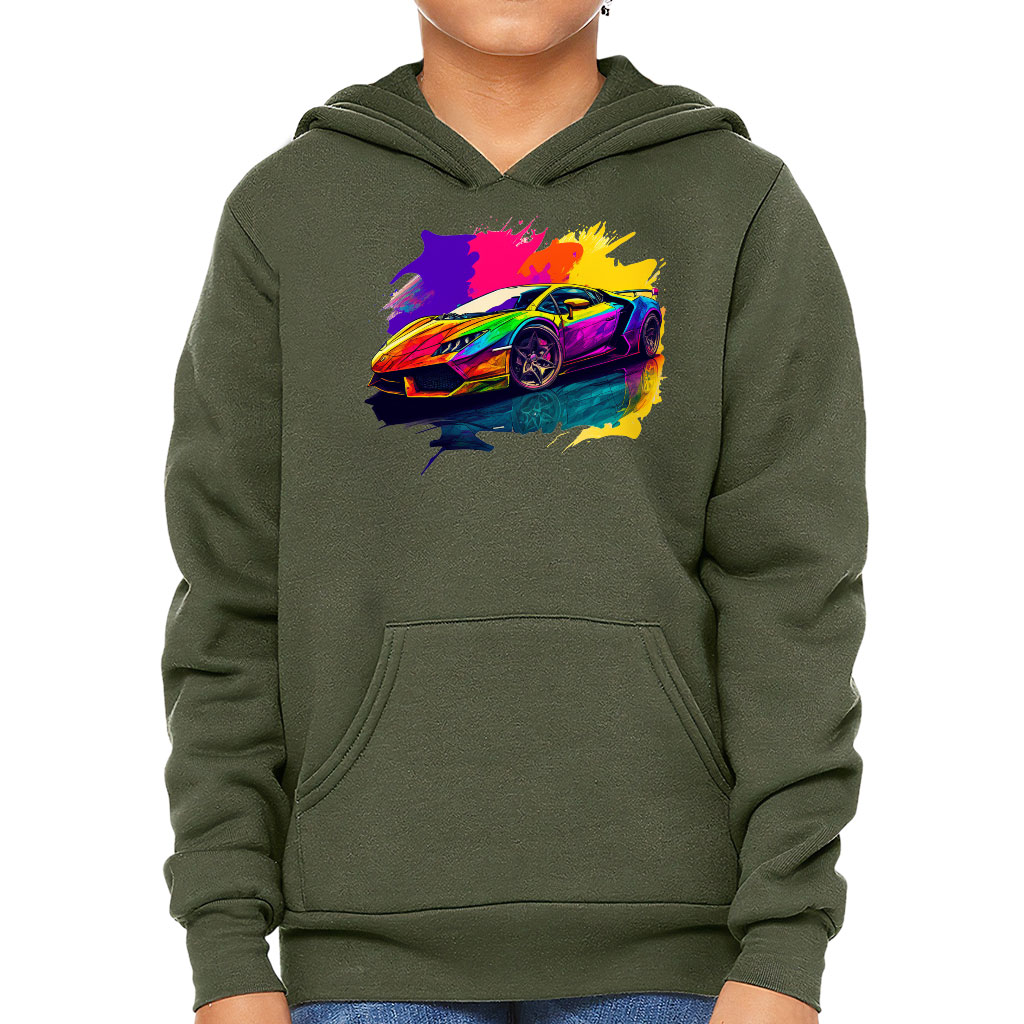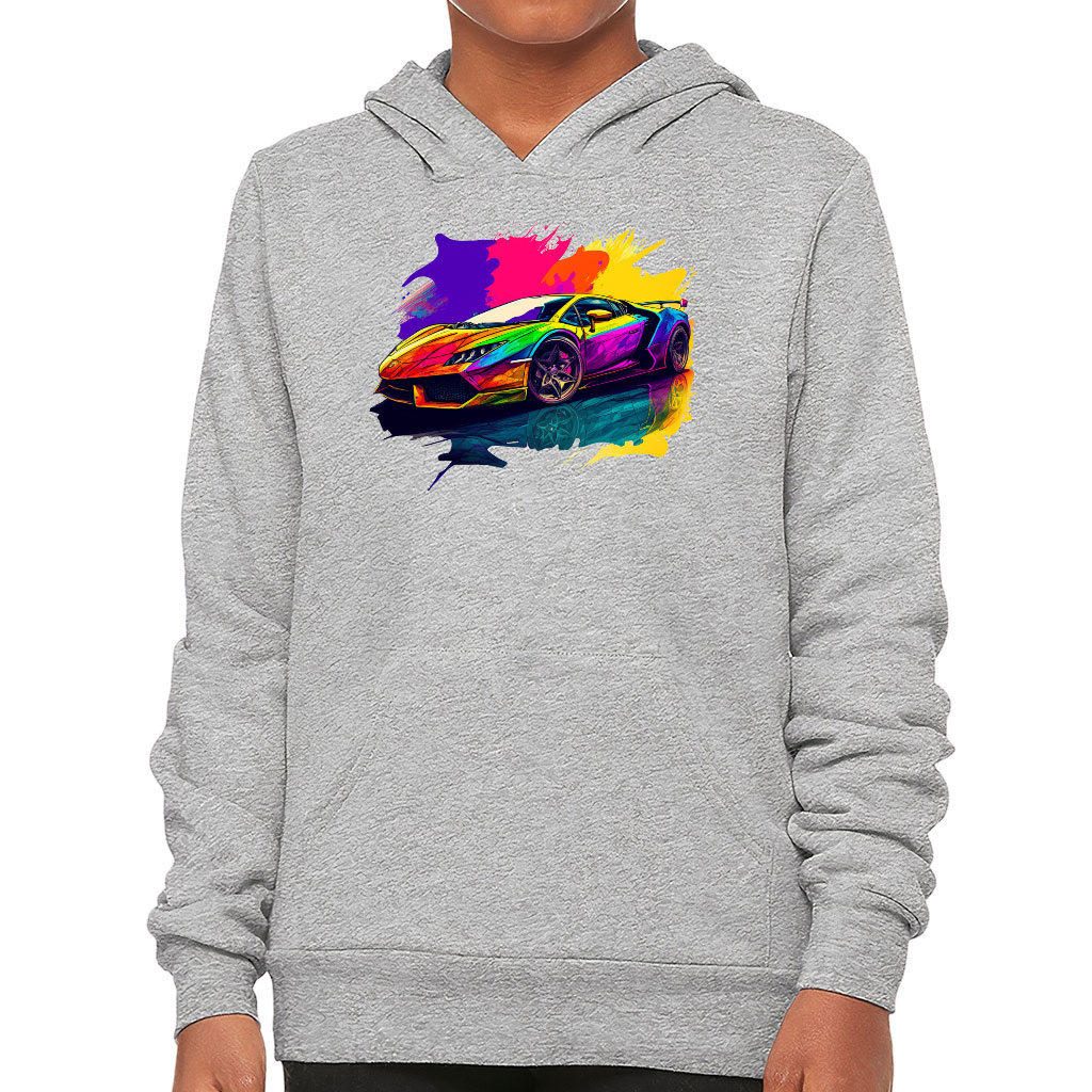 Car Print Kids’ Sponge Fleece Hoodie – Colorful Kids’ Hoodie – Illustration Hoodie for Kids