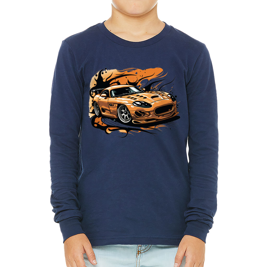 Car Themed Kids’ Long Sleeve T-Shirt – Cool Trendy T-Shirt – Cool Design Long Sleeve Tee