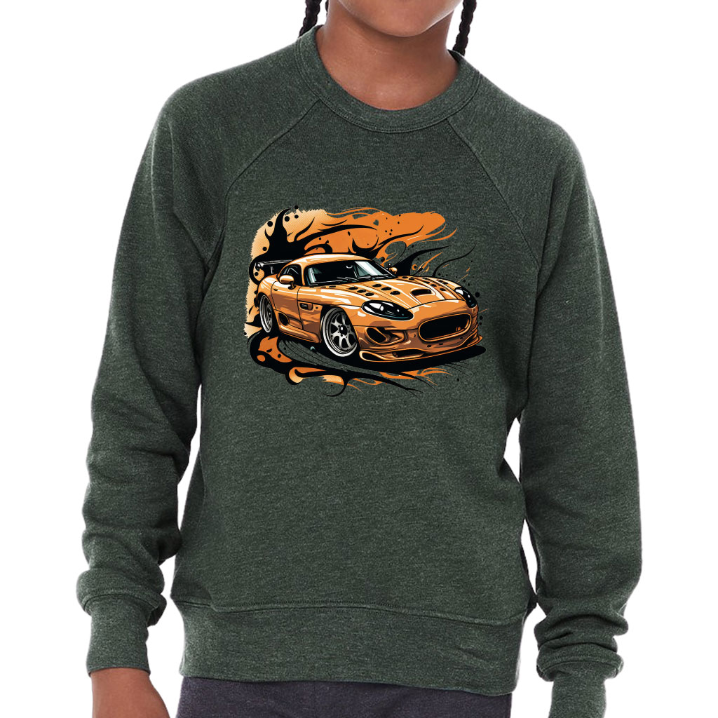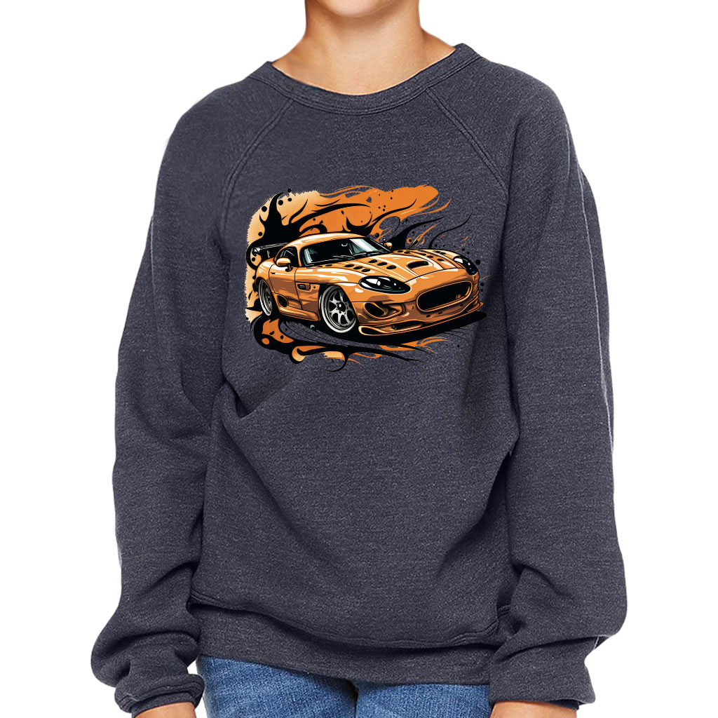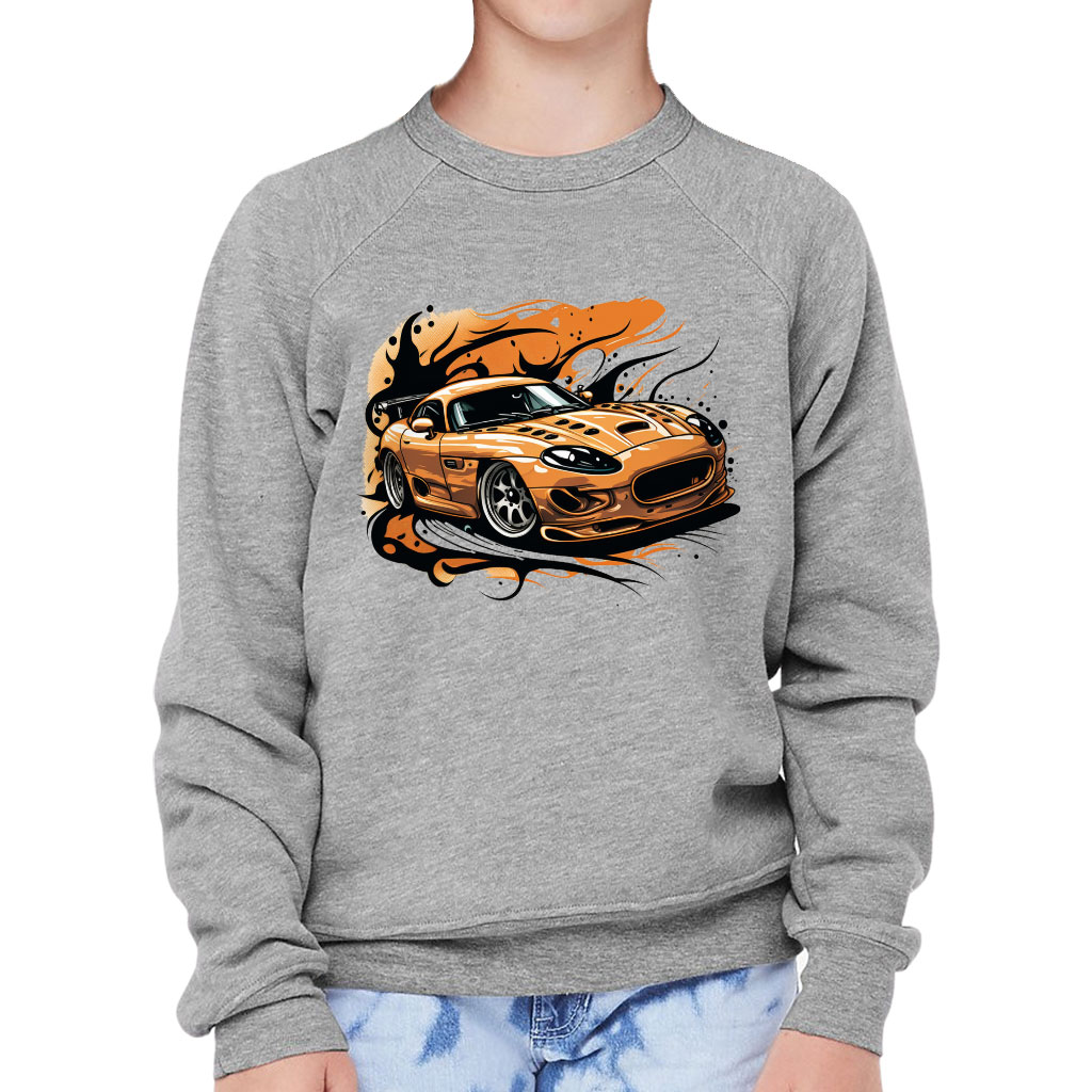 Car Themed Kids’ Raglan Sweatshirt – Cool Trendy Sponge Fleece Sweatshirt – Cool Design Sweatshirt