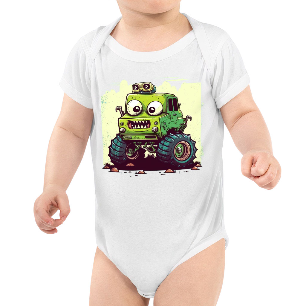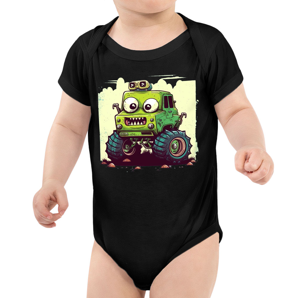 Cartoon Car Baby Jersey One-Piece – Funny Baby Bodysuit – Monster Truck Baby One-Piece