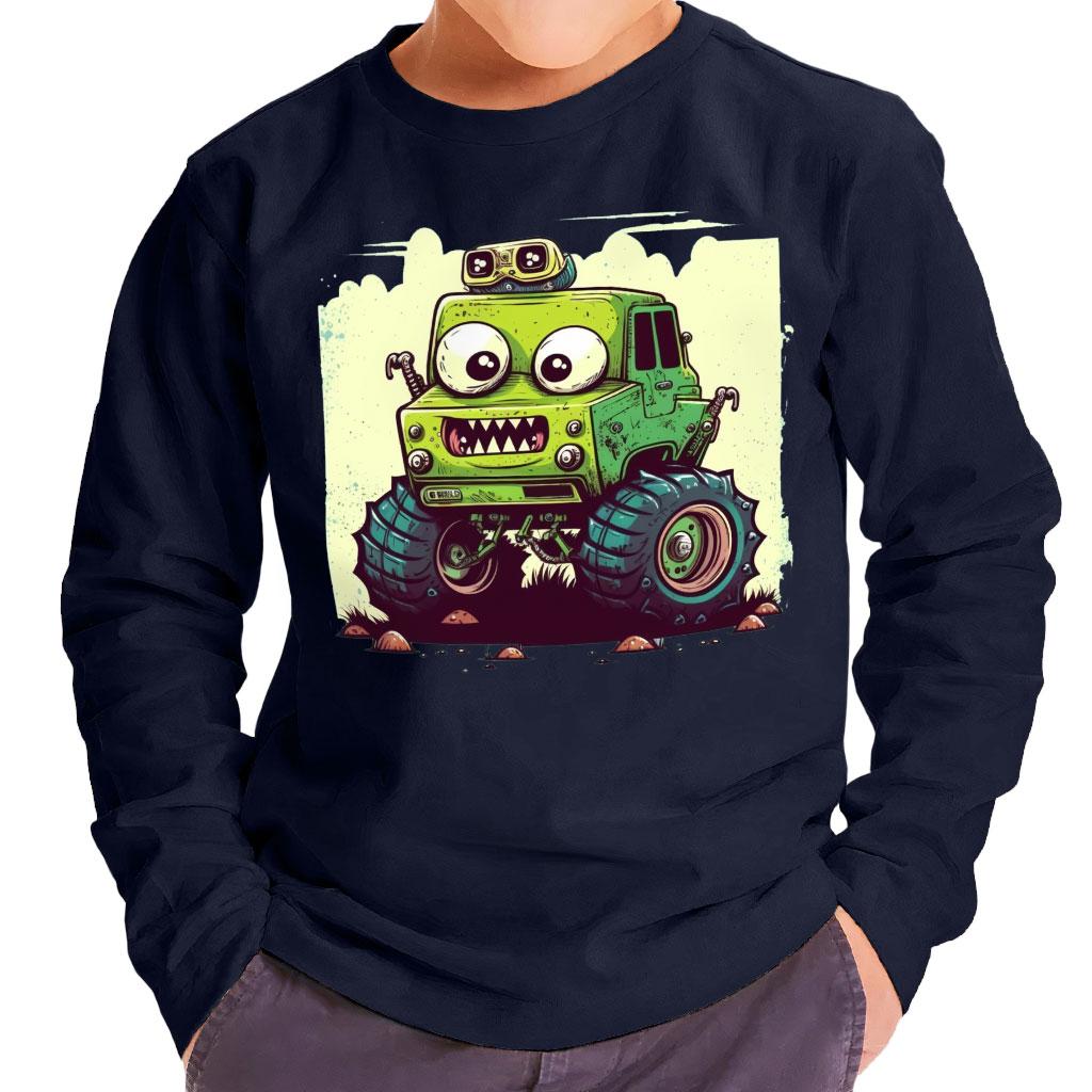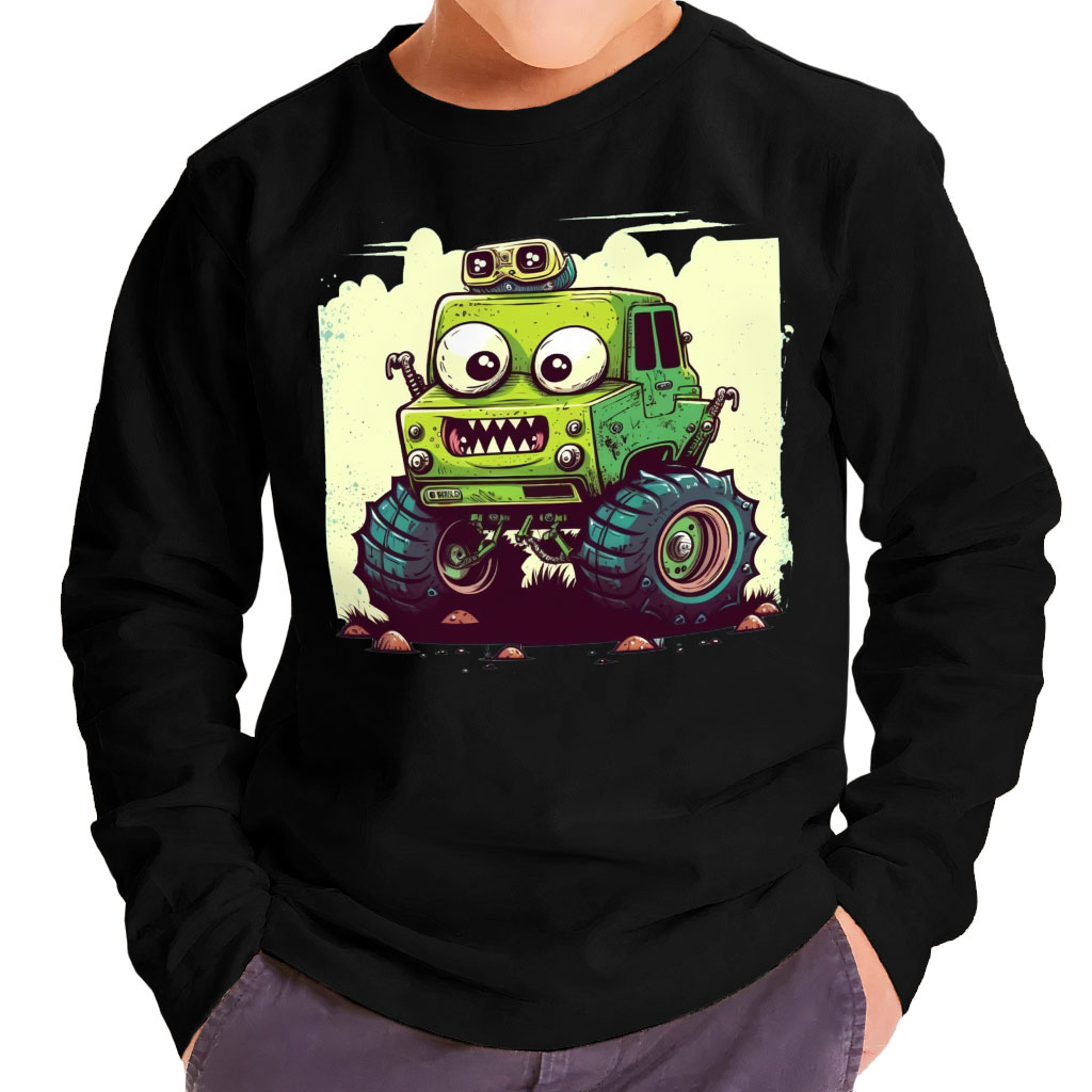 Cartoon Car Toddler Long Sleeve T-Shirt – Funny Kids’ T-Shirt – Monster Truck Long Sleeve Tee