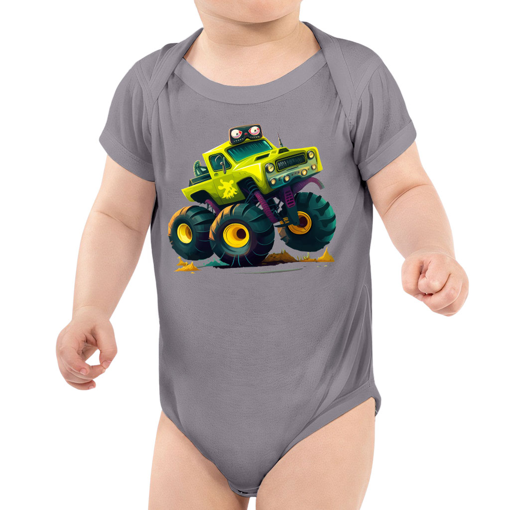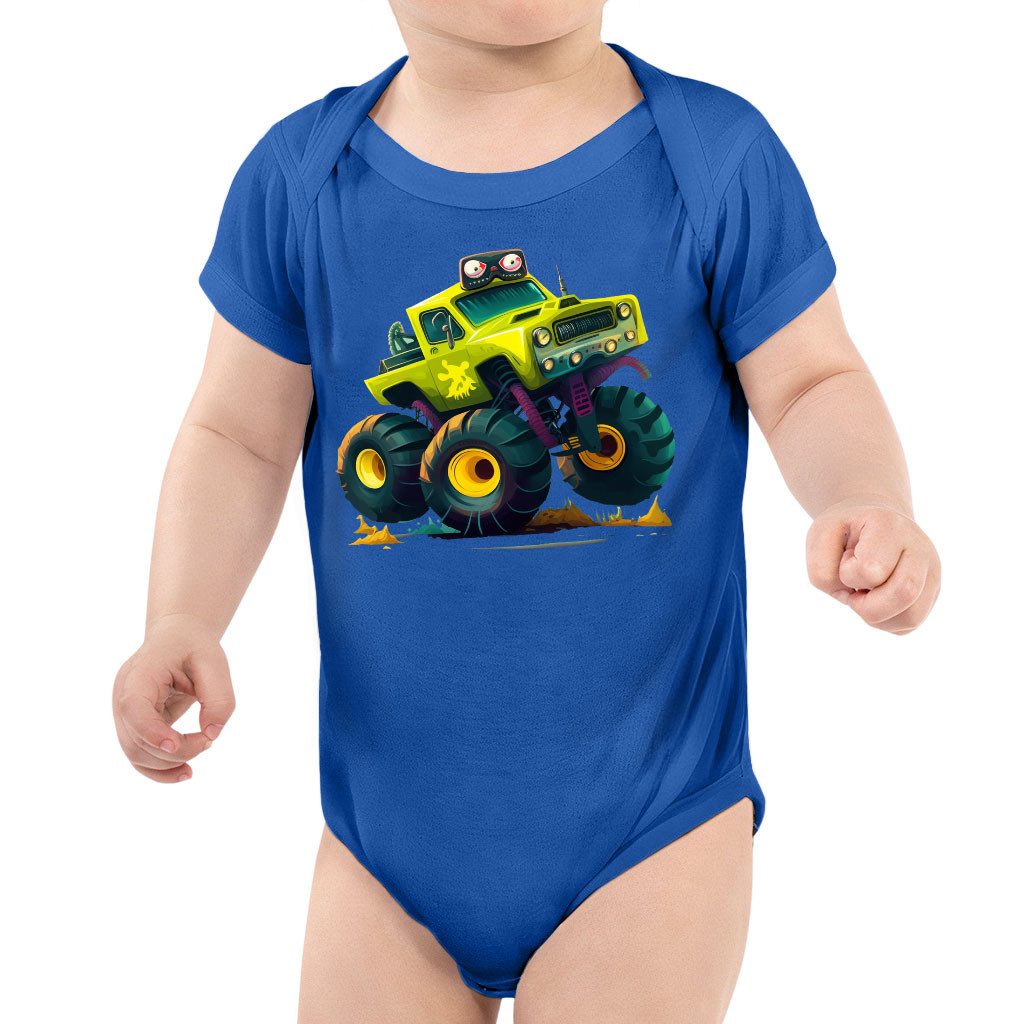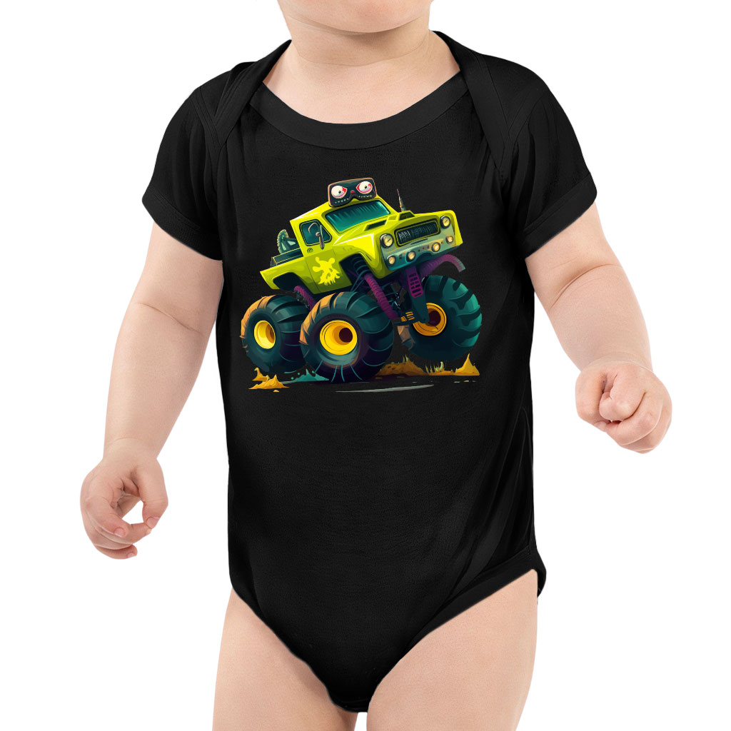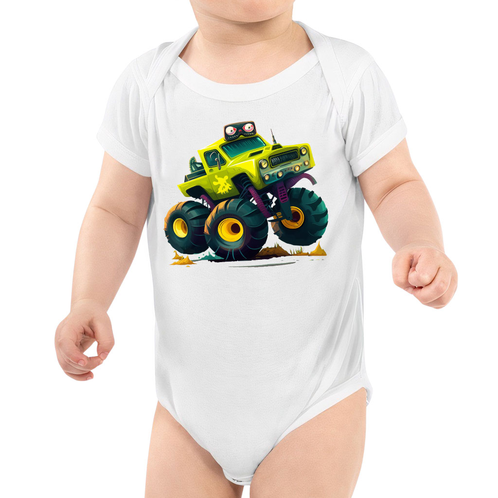 Cartoon Truck Baby Jersey One-Piece – Monster Truck Baby Bodysuit – Art Baby One-Piece