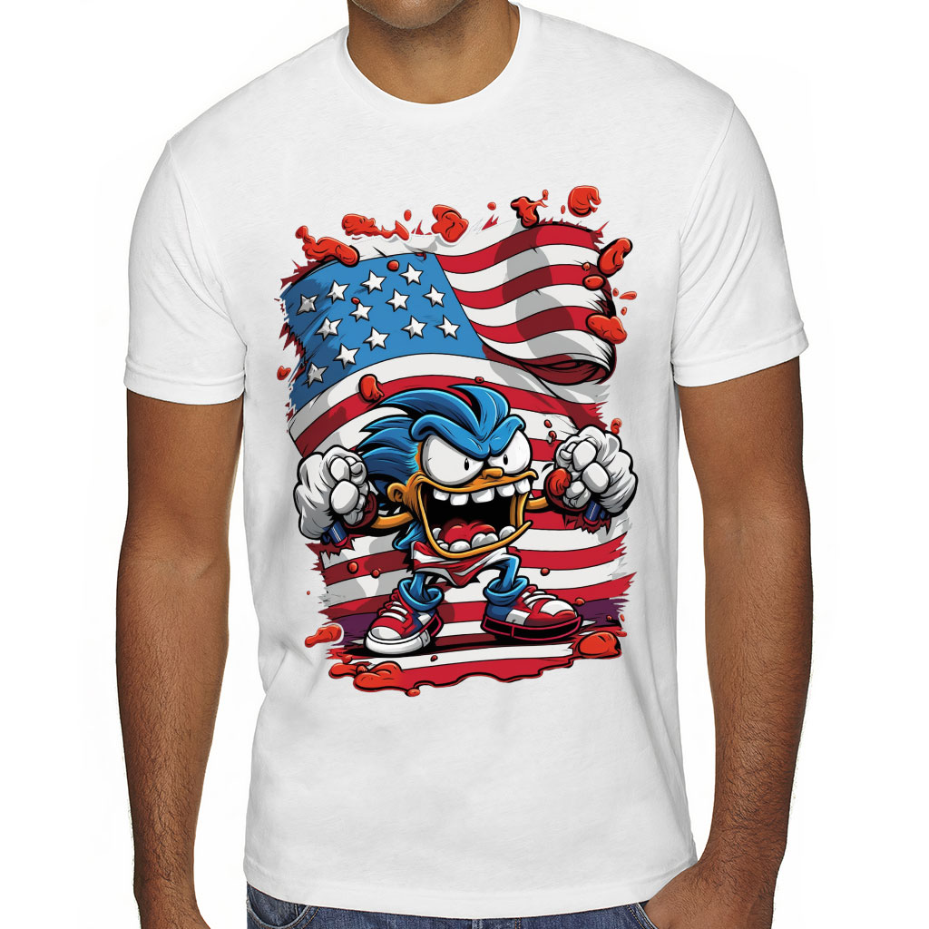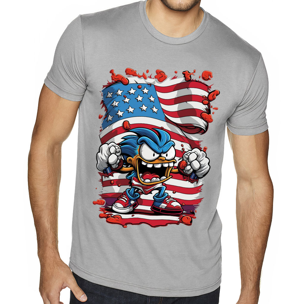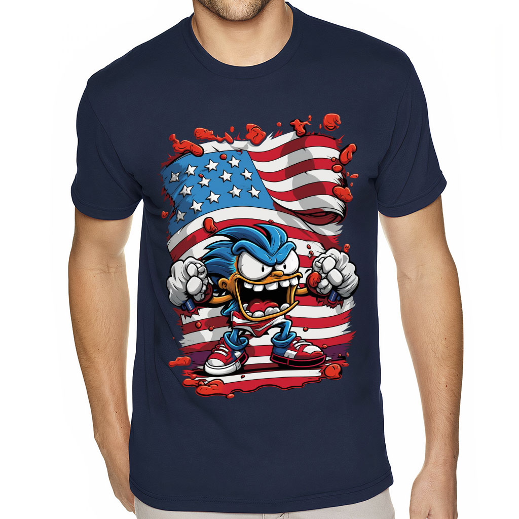 Cartoon USA Flag Sueded T-Shirt – Funny T-Shirt – Art Sueded Tee