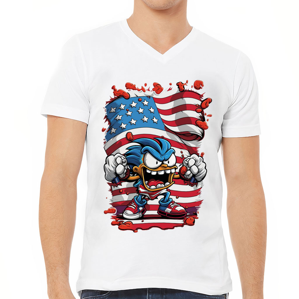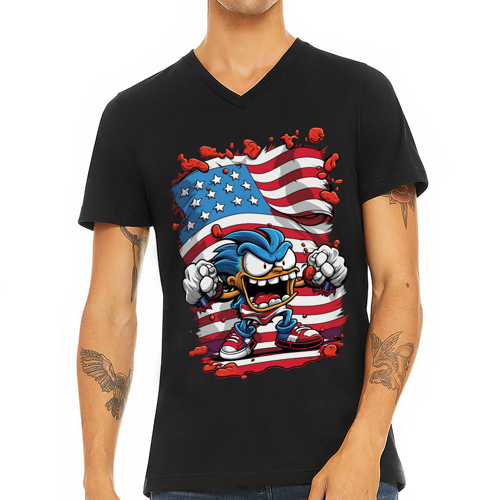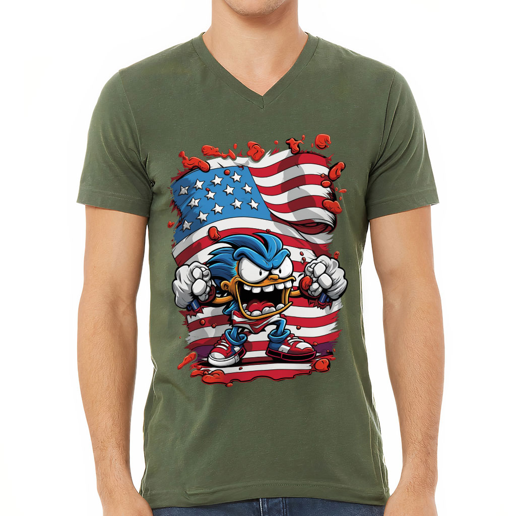 Cartoon USA Flag V-Neck T-Shirt – Funny T-Shirt – Art V-Neck Tee