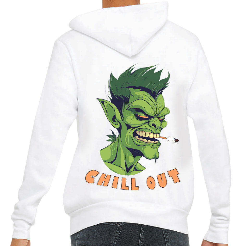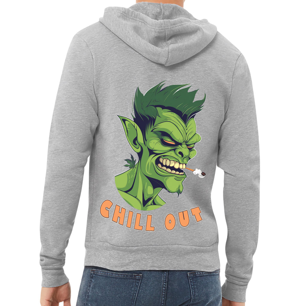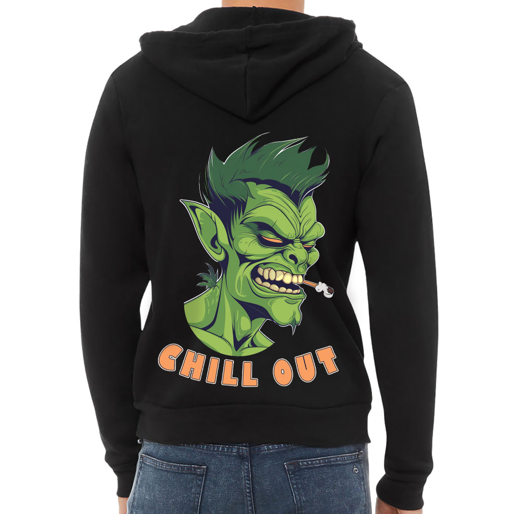 Chill Out Back Print Full-Zip Hoodie – Weed Hooded Sweatshirt – Cannabis Hoodie
