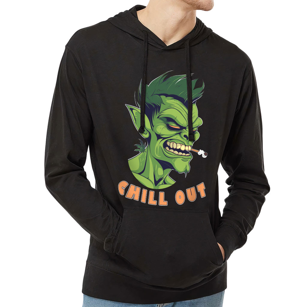 Chill Out Lightweight Jersey Hoodie – Weed Hooded Pullover – Cannabis Hoodie