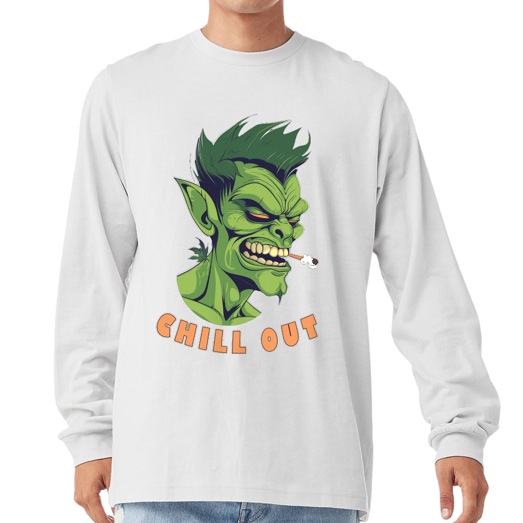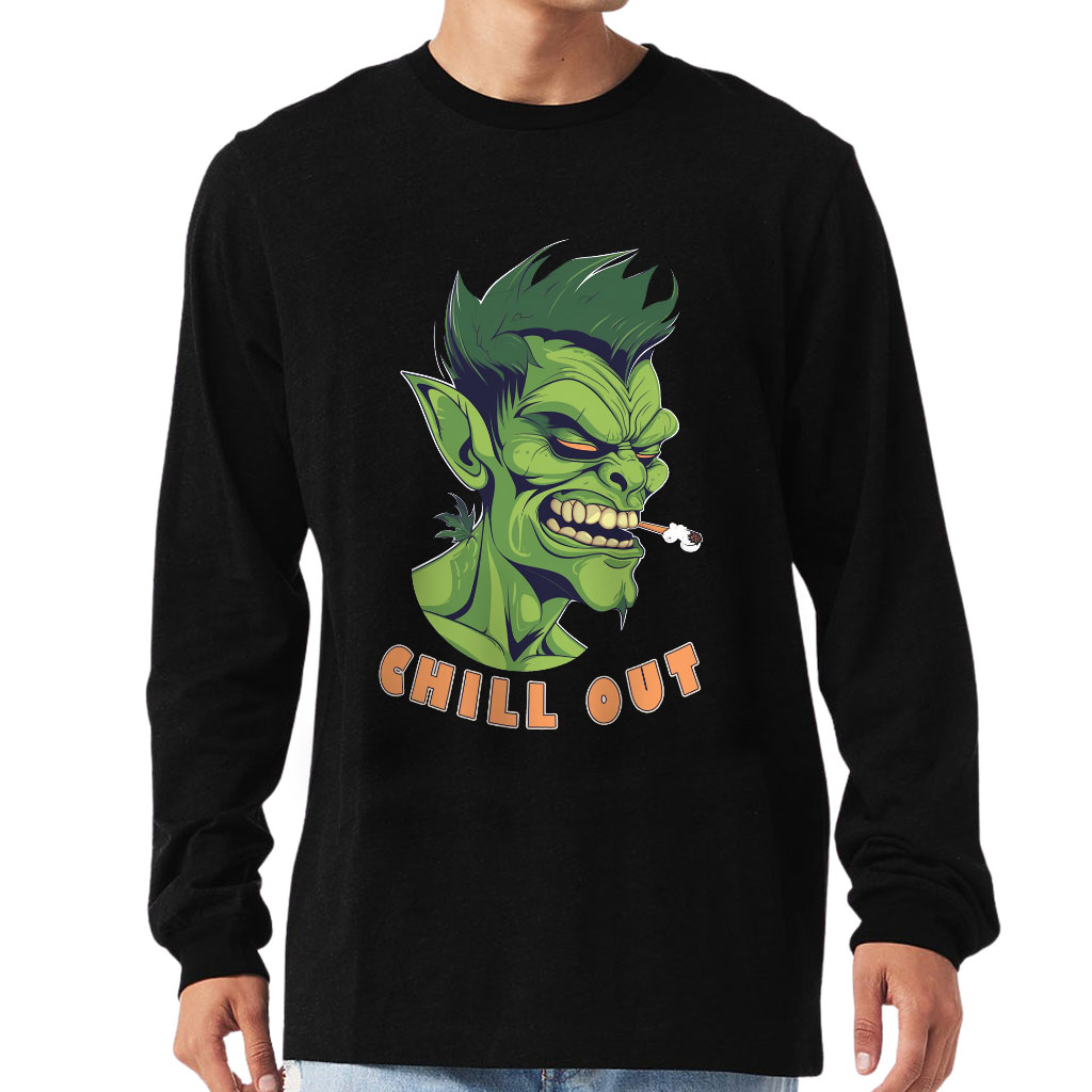 Chill Out Long Sleeve T-Shirt – Creature T-Shirt – Printed Long Sleeve Tee