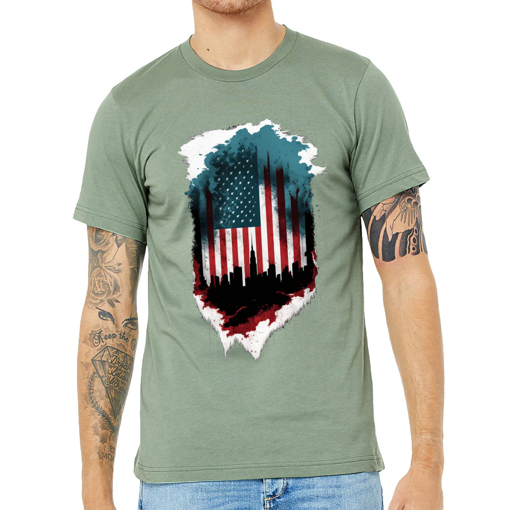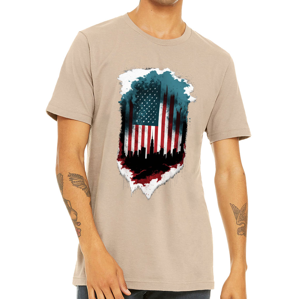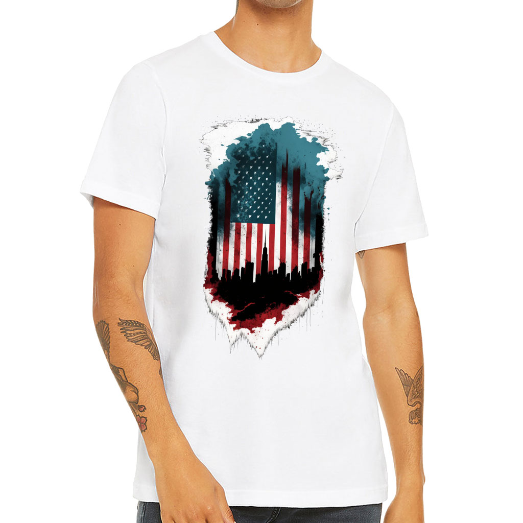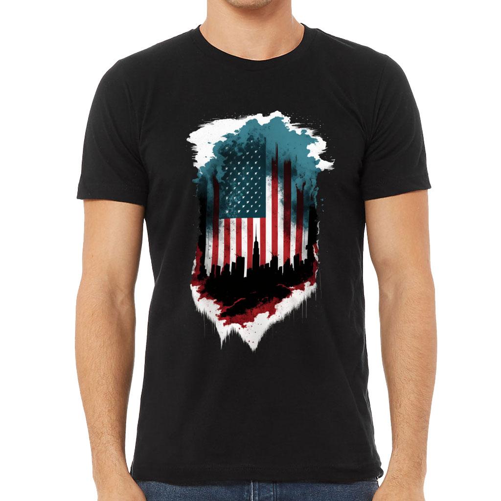 City Skyline Silhouette Short Sleeve T-Shirt – USA Flag T-Shirt – Cool Short Sleeve Tee