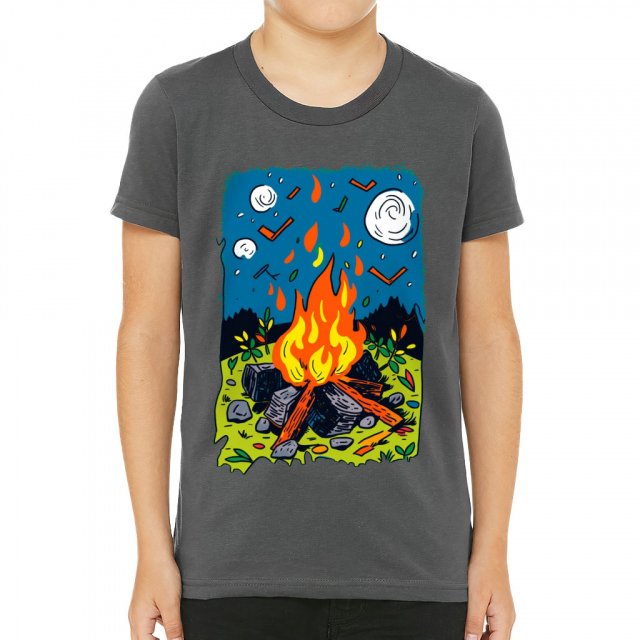 Campfire Design Kids’ T-Shirt – Cartoon T-Shirt – Graphic Art Tee Shirt for Kids