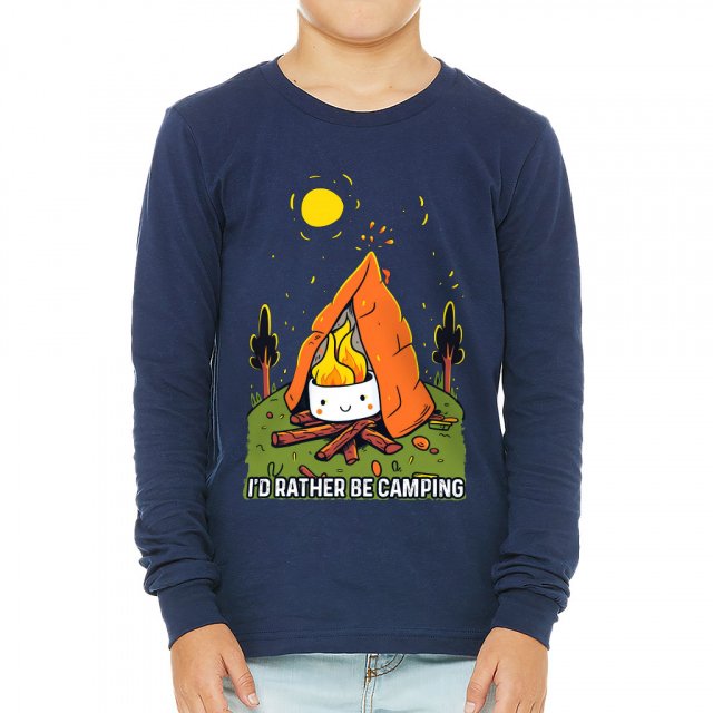 I’d Rather Be Camping Kids’ Long Sleeve T-Shirt – Cute Kawaii T-Shirt – Adorable Long Sleeve Tee