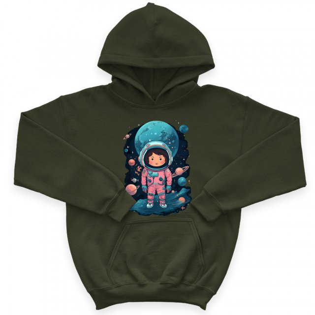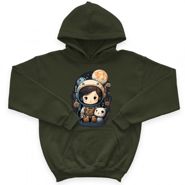 Astronaut Graphic Kids’ Sponge Fleece Hoodie – Kawaii Kids’ Hoodie – Themed Hoodie for Kids