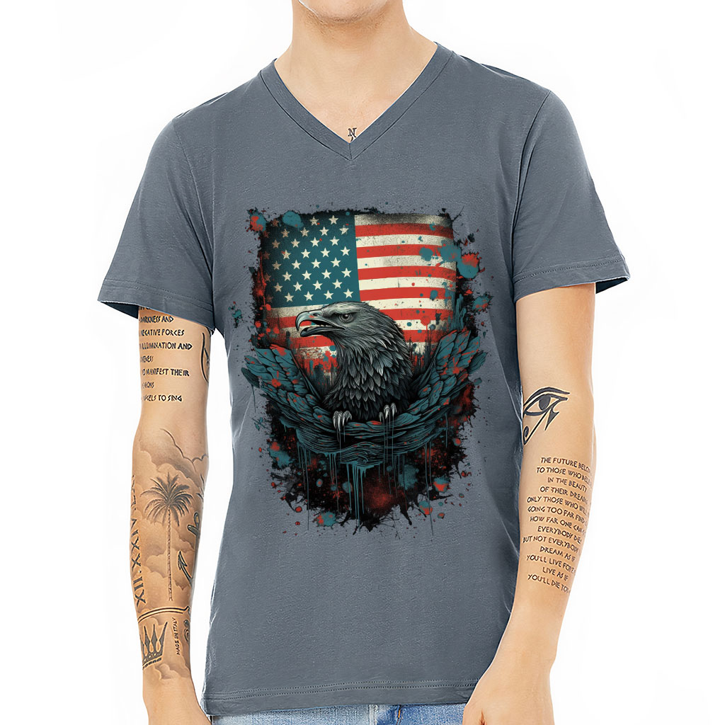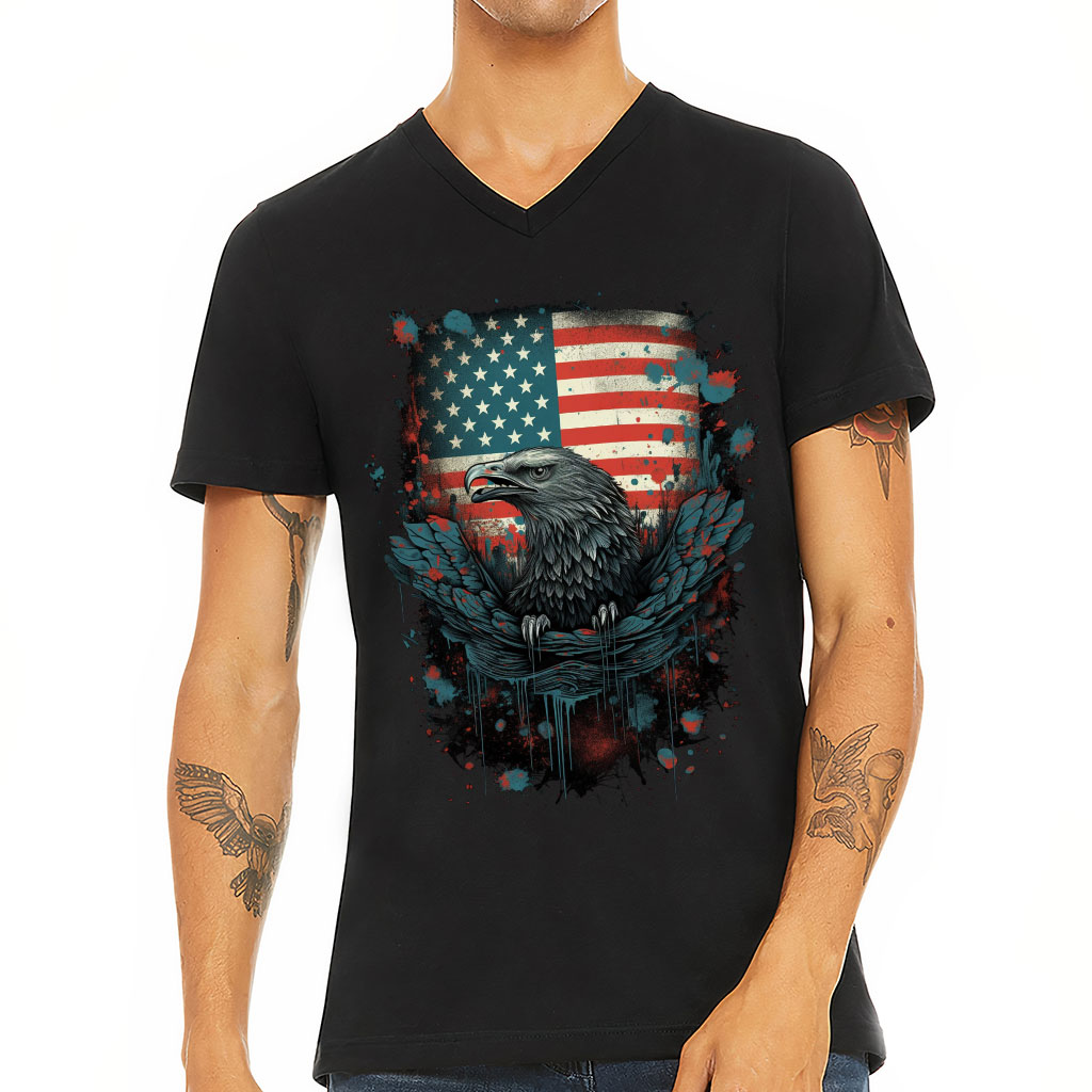 Cool Eagle V-Neck T-Shirt – America T-Shirt – Bird V-Neck Tee