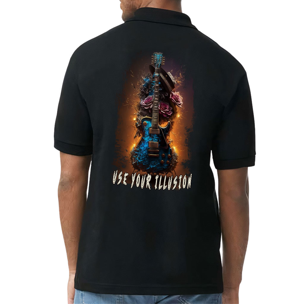 Cool Guitar Jersey Sport T-Shirt – Rock and Roll T-Shirt – Floral Sport Tee