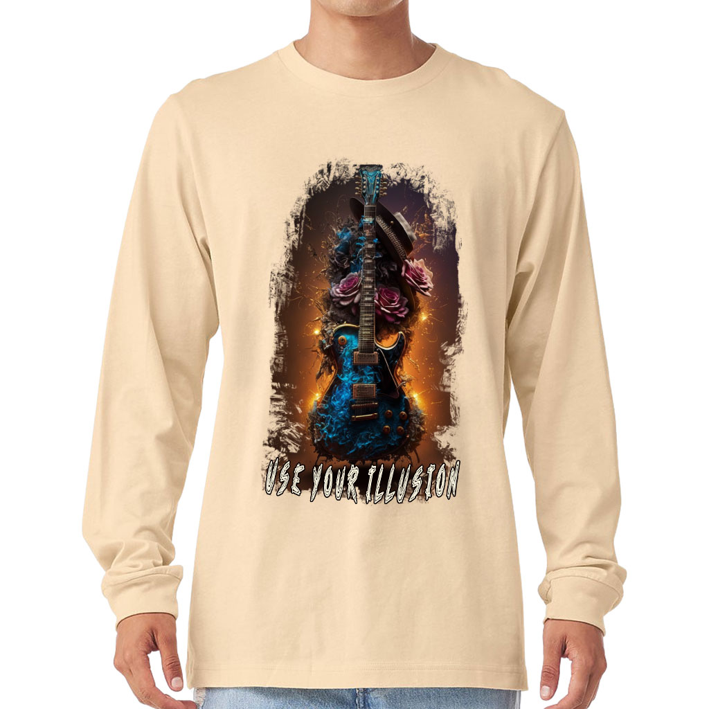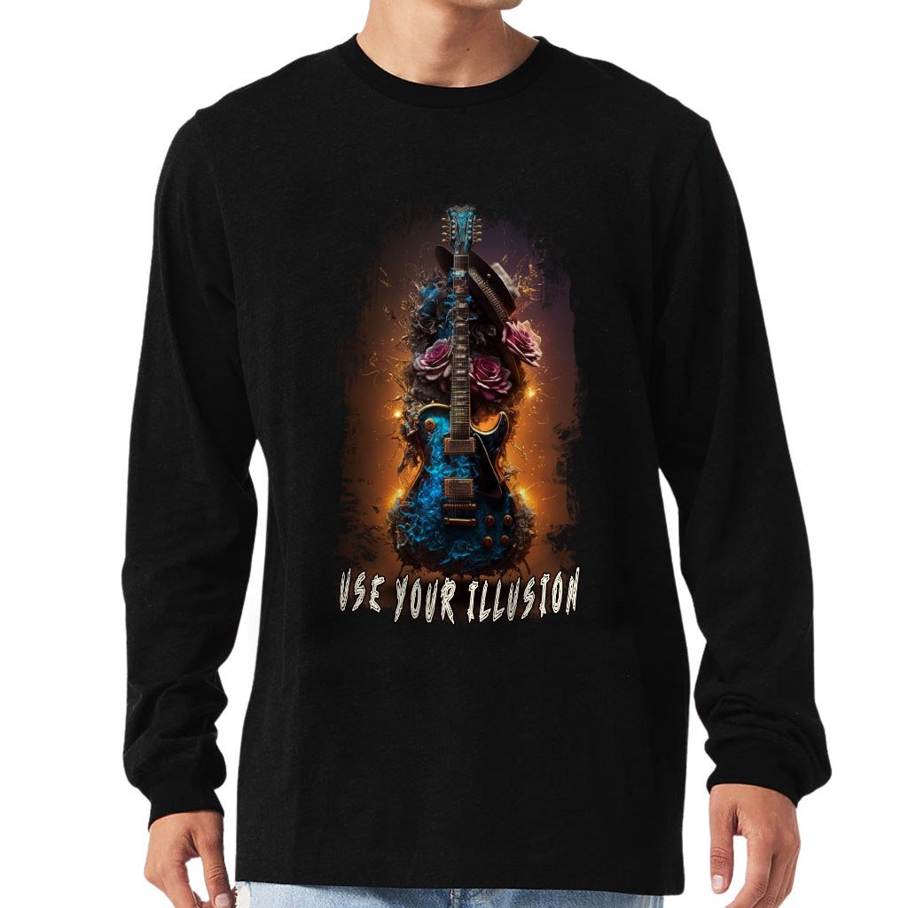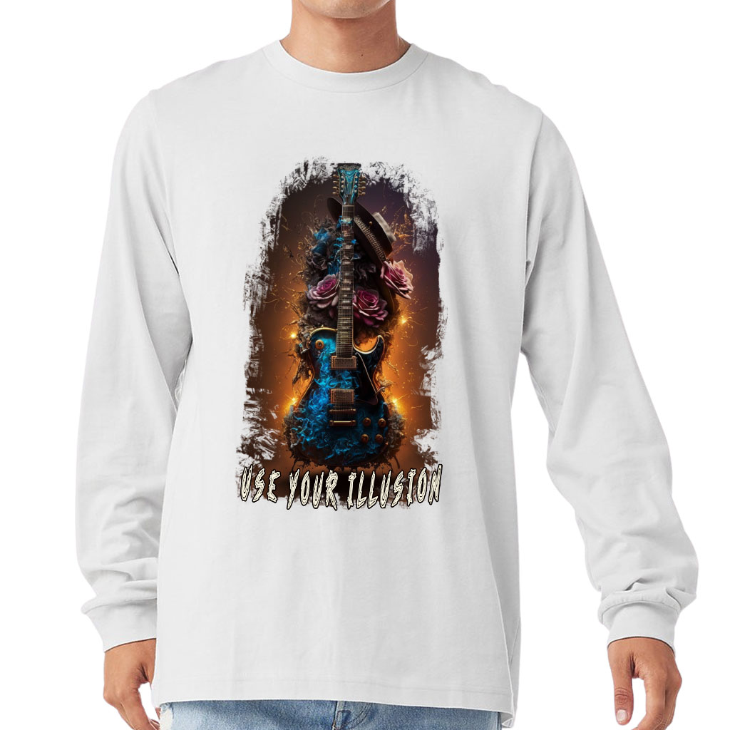 Cool Guitar Long Sleeve T-Shirt – Rock and Roll T-Shirt – Floral Long Sleeve Tee
