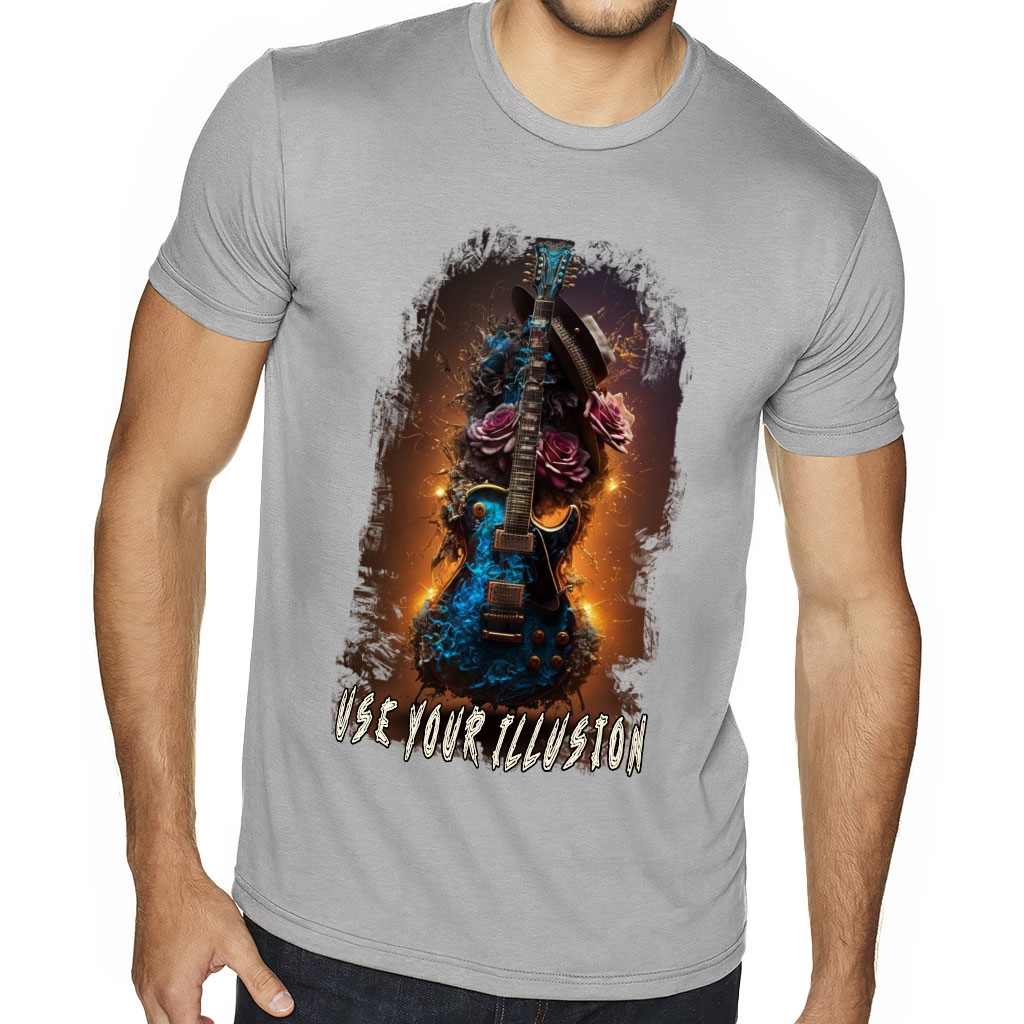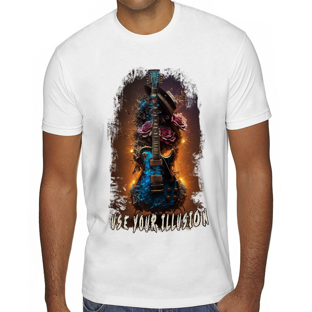 Cool Guitar Sueded T-Shirt – Rock and Roll T-Shirt – Floral Sueded Tee