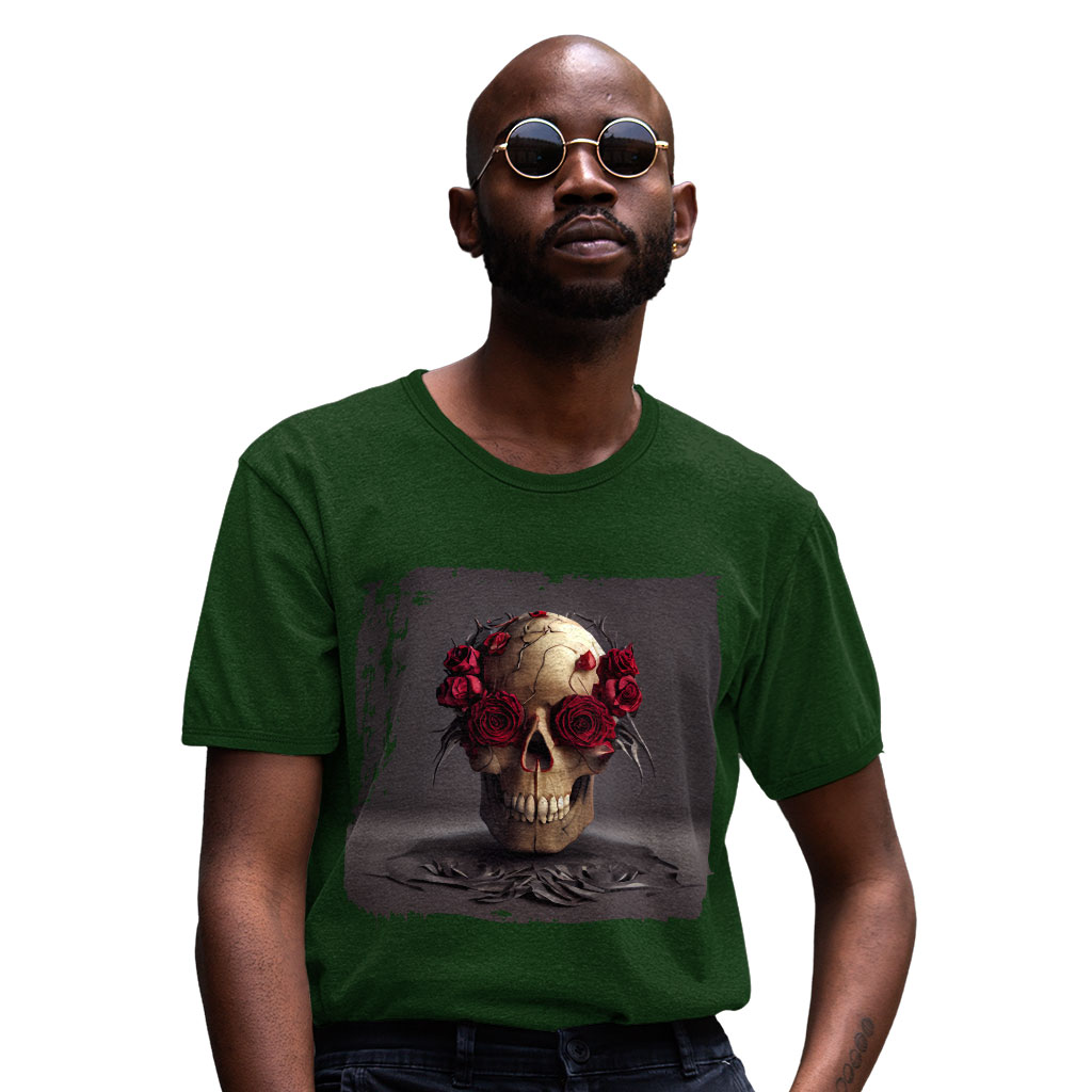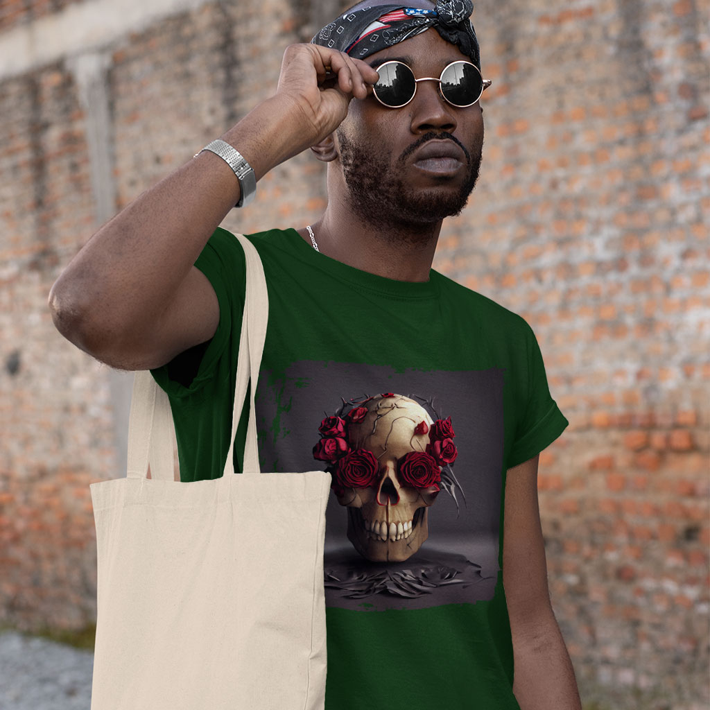 Cool Skull Graphic Heavy Cotton T-Shirt – Art Tee Shirt – Roses T-Shirt