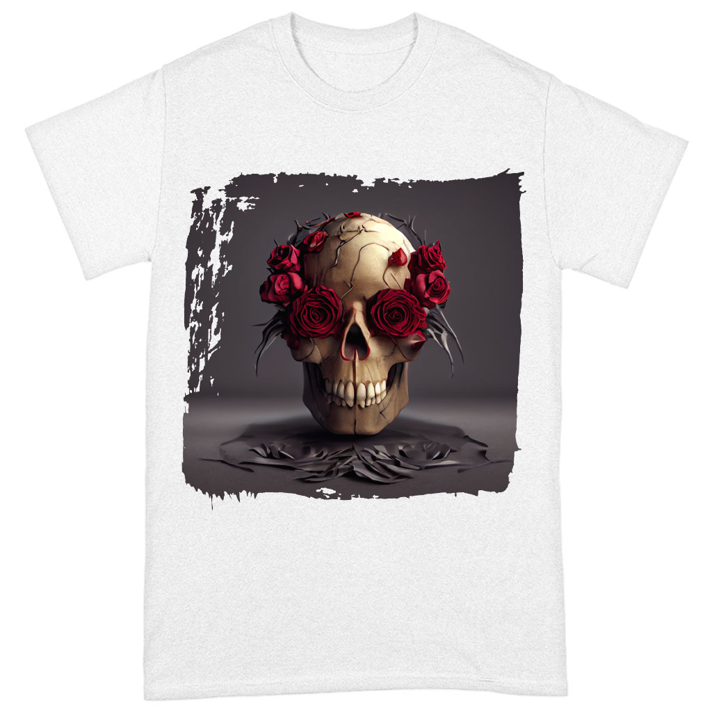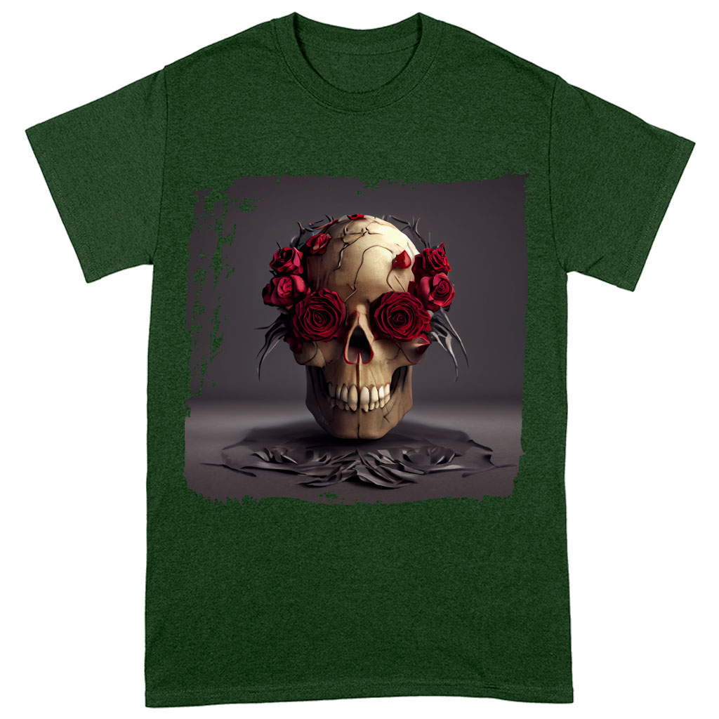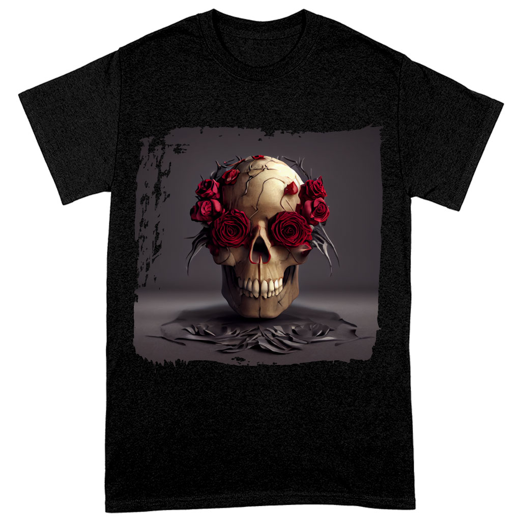 Cool Skull Graphic Heavy Cotton T-Shirt – Art Tee Shirt – Roses T-Shirt