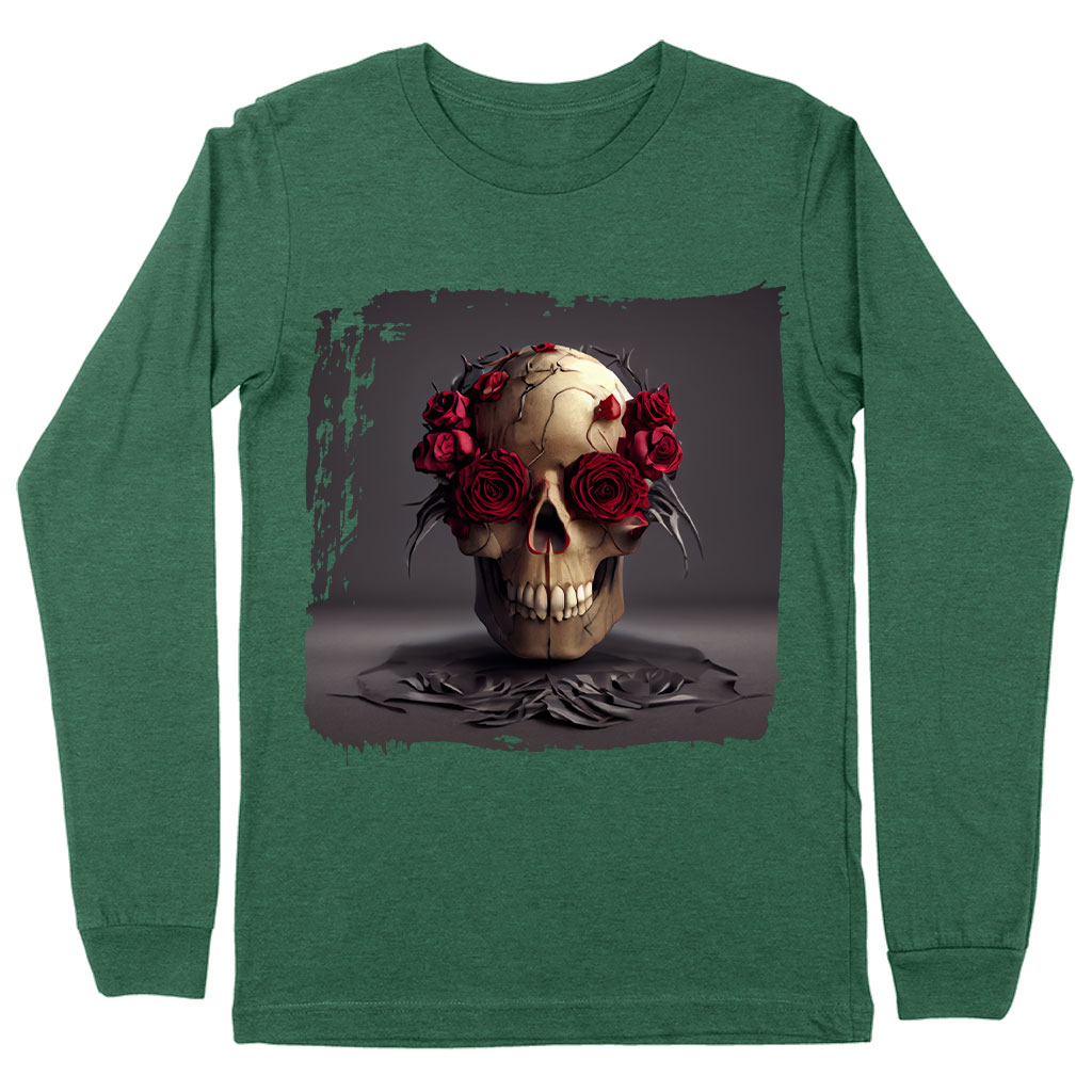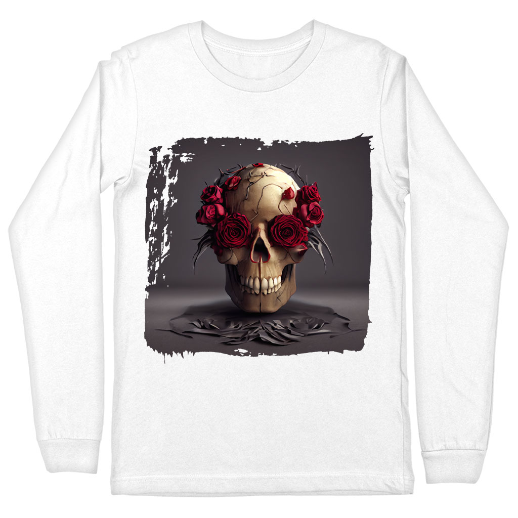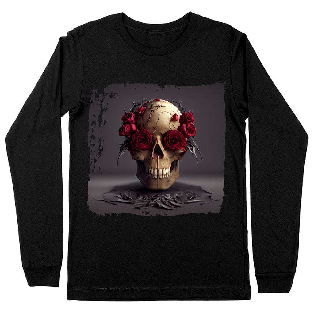 Cool Skull Graphic Long Sleeve T-Shirt – Art T-Shirt – Roses Long Sleeve Tee Shirt